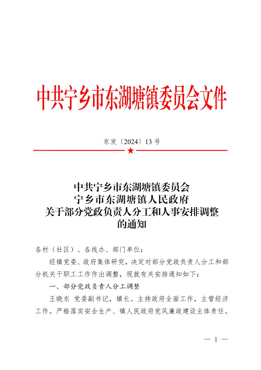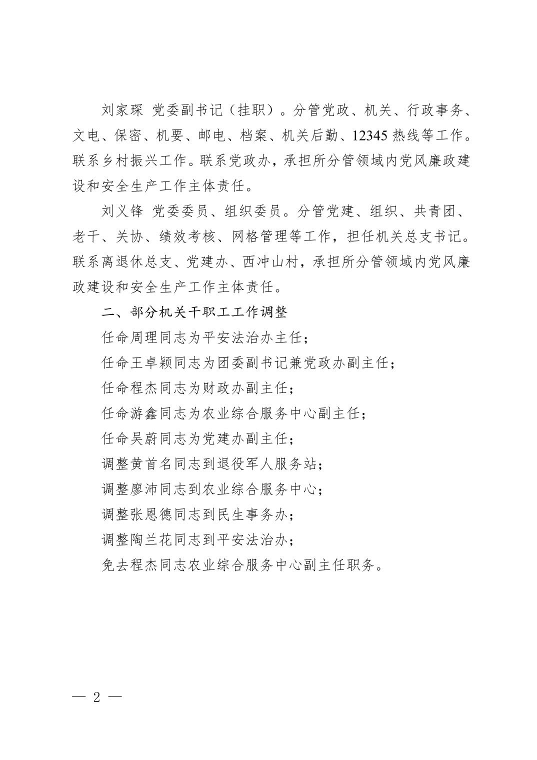 關于部分黨政負責人分工和人事安排調整的通知
