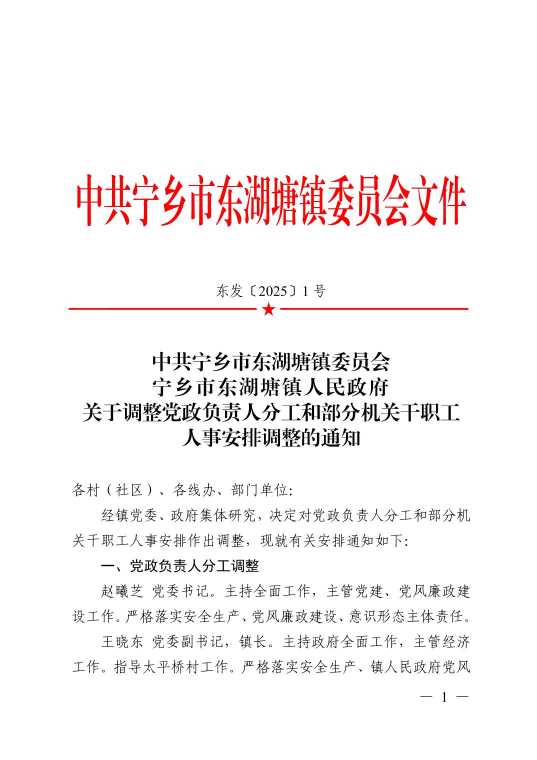 關于調整黨政負責人分工和部分機關干職工 人事安排調整的通知