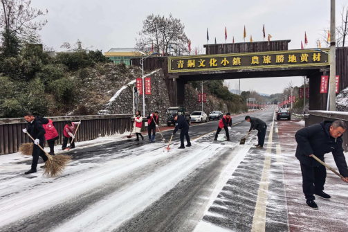 二是巡查清障保暢通,民生運行有保障。19日晚,黃材鎮組織專門力量開展夜間巡查,主要對道路、橋梁、坡道進行實地勘察,全面掌握路面結冰及通行狀況,對巡查中判斷不具備安全通行條件的路段,果斷采取臨時封控措施,并設置警示標識,嚴防事故發生。同步加強供水、供電等民生設施巡檢,指導群眾做好戶外水管防凍保護,為出行不便、生活困難的群眾配送飲用水等應急物資。20日一早,全鎮機關干部和村(社區)工作人員分片包干,大家揮舞鐵鍬掃帚,及時清理積雪積冰,全力保障群眾清晨出行安全。