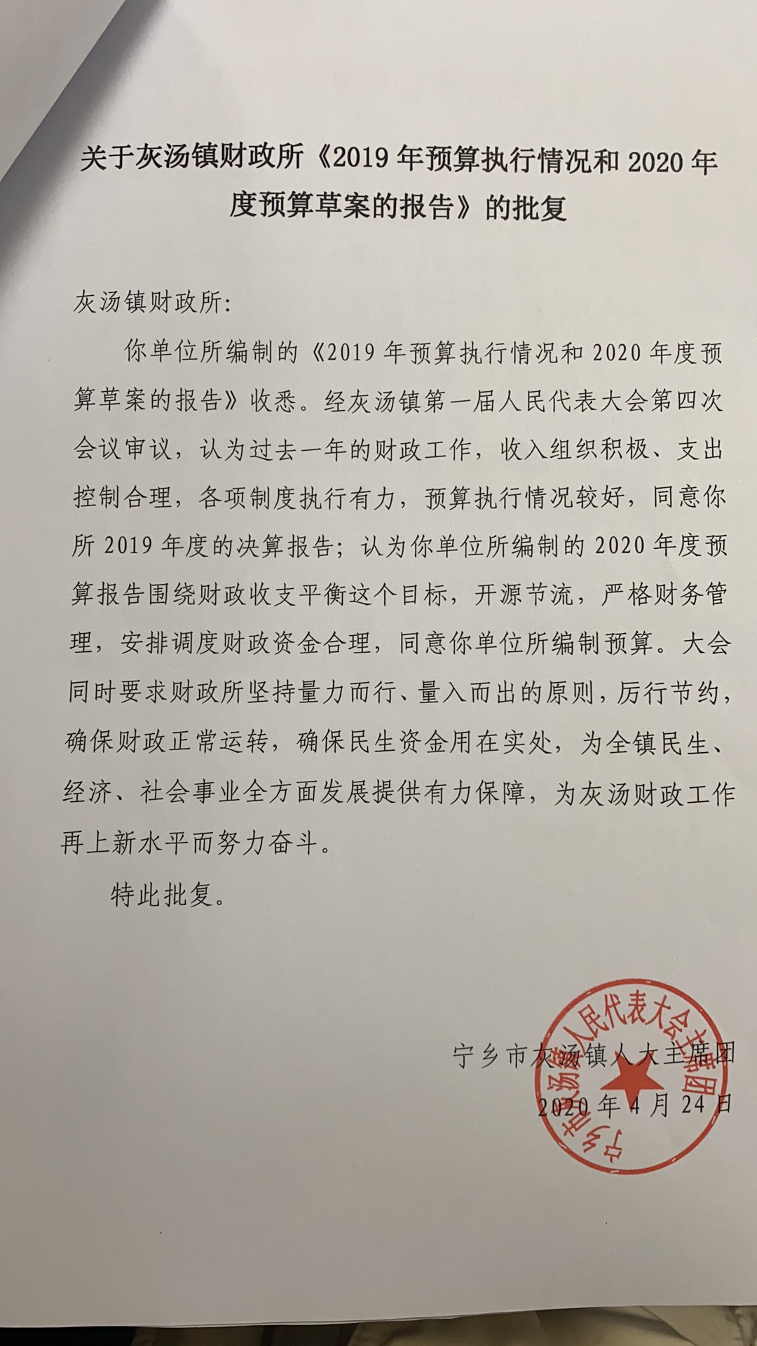 寧鄉市灰湯鎮人民政府2020年部門預算