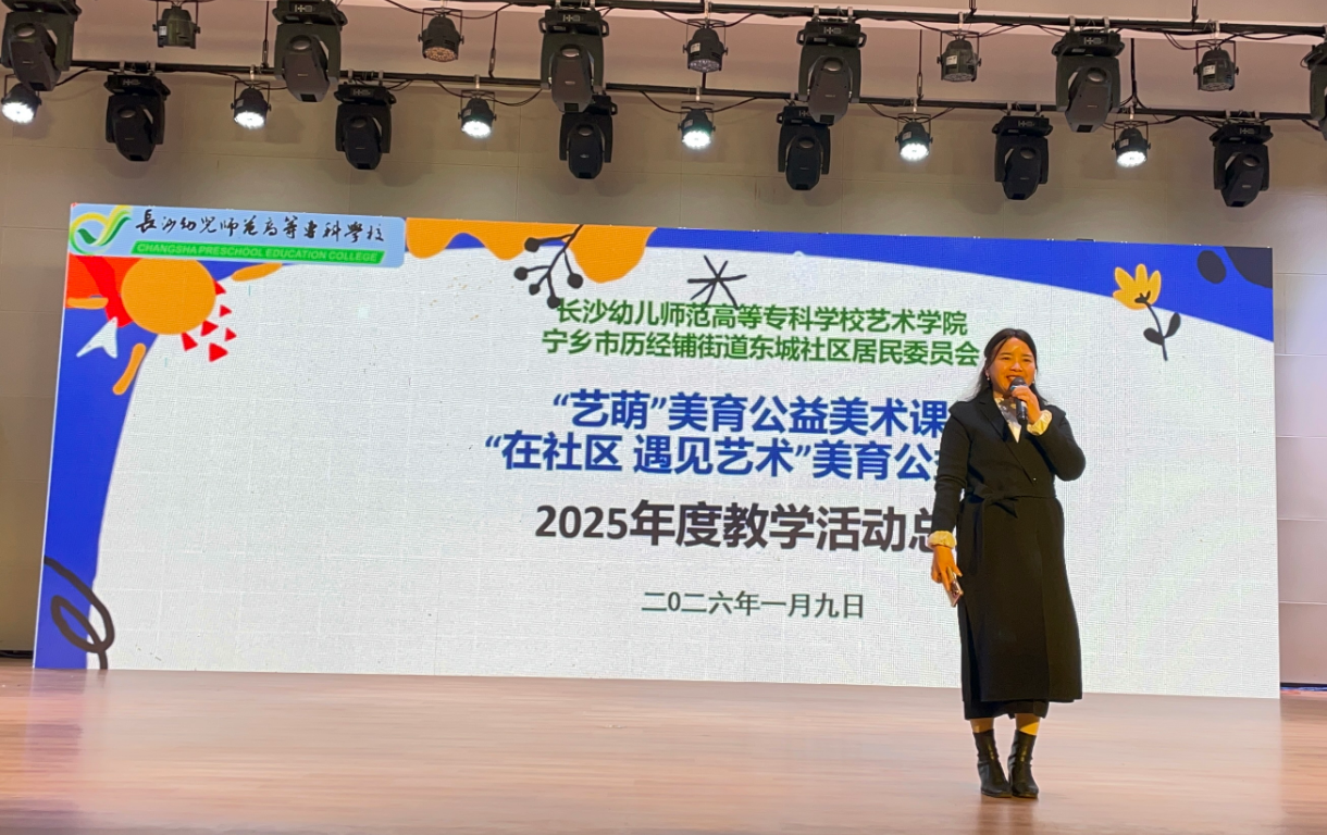 ?近日,歷經鋪街道東城社區與長沙幼兒師范高等專科學校藝術學院聯合舉辦的“在社區遇見藝術”之“藝萌”兒童美育公益課堂年度總結會在學院音樂廳順利舉行。本次會議旨在回顧與總結本年度兒童公益課堂的教學成果與服務經驗,展示“校社聯動”公益育人的積極成效。