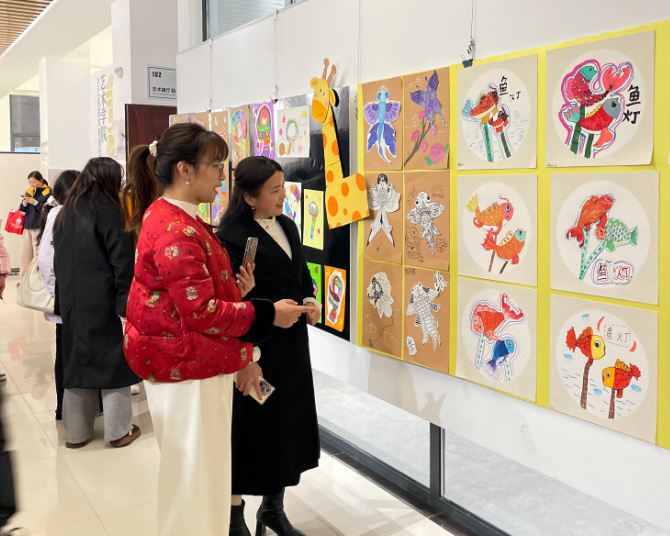 會后,與會人員一同參觀了兒童作品展。展覽以“童心守正”為主題,展出了公益課堂孩子們在老師指導下創作的繪畫、手工等作品近百幅。一幅幅充滿想象力的作品,不僅展現了孩子們的藝術潛能,也傳遞出純真向上的精神風貌,吸引著大家駐足欣賞。