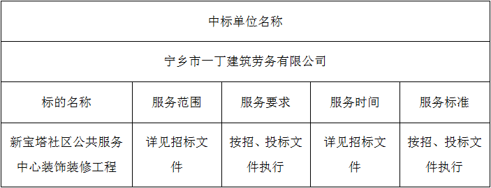 新寶塔社區公共服務中心裝飾裝修工程結果公告