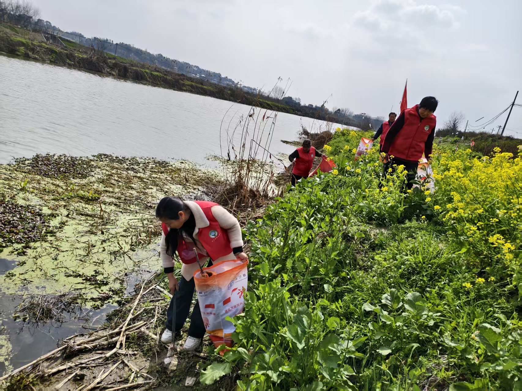 雷鋒紀念日,老糧倉鎮黨委政府領導志愿者在楚江河開展“清河凈灘”志愿活動。春日的下午,河岸微風輕拂,油菜花香四處飄逸。志愿者們身著紅馬甲,手持清潔工具,以實際行動踐行雷鋒精神,守護家鄉河道環境。