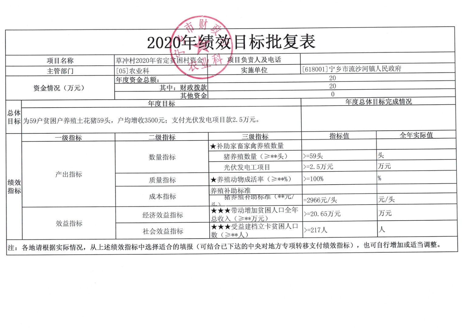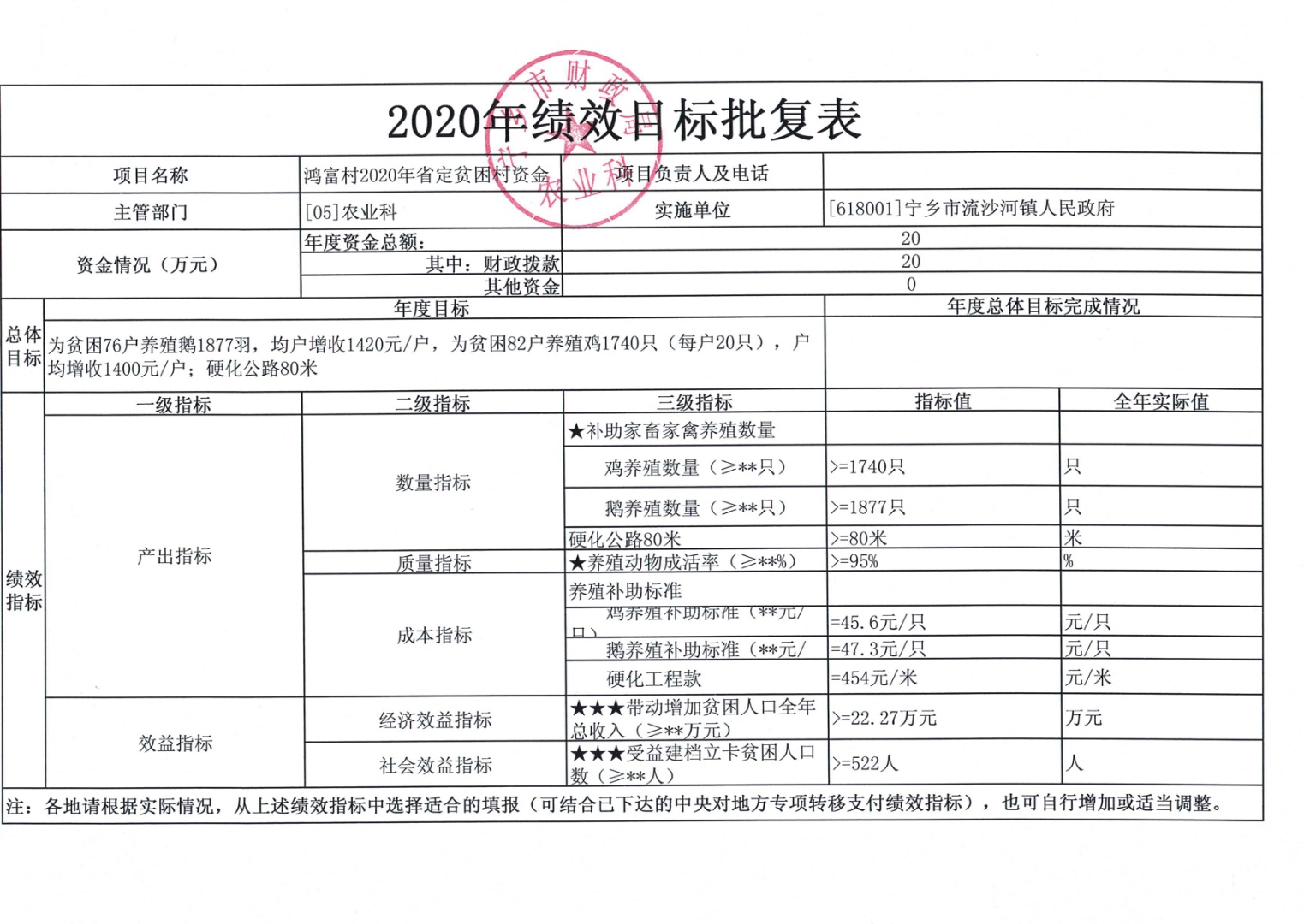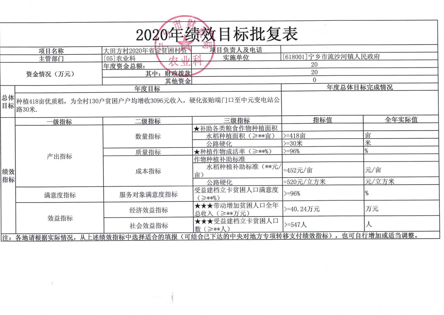 流沙河鎮2020年省定貧困村精準扶貧資金績效目標批復情況公告