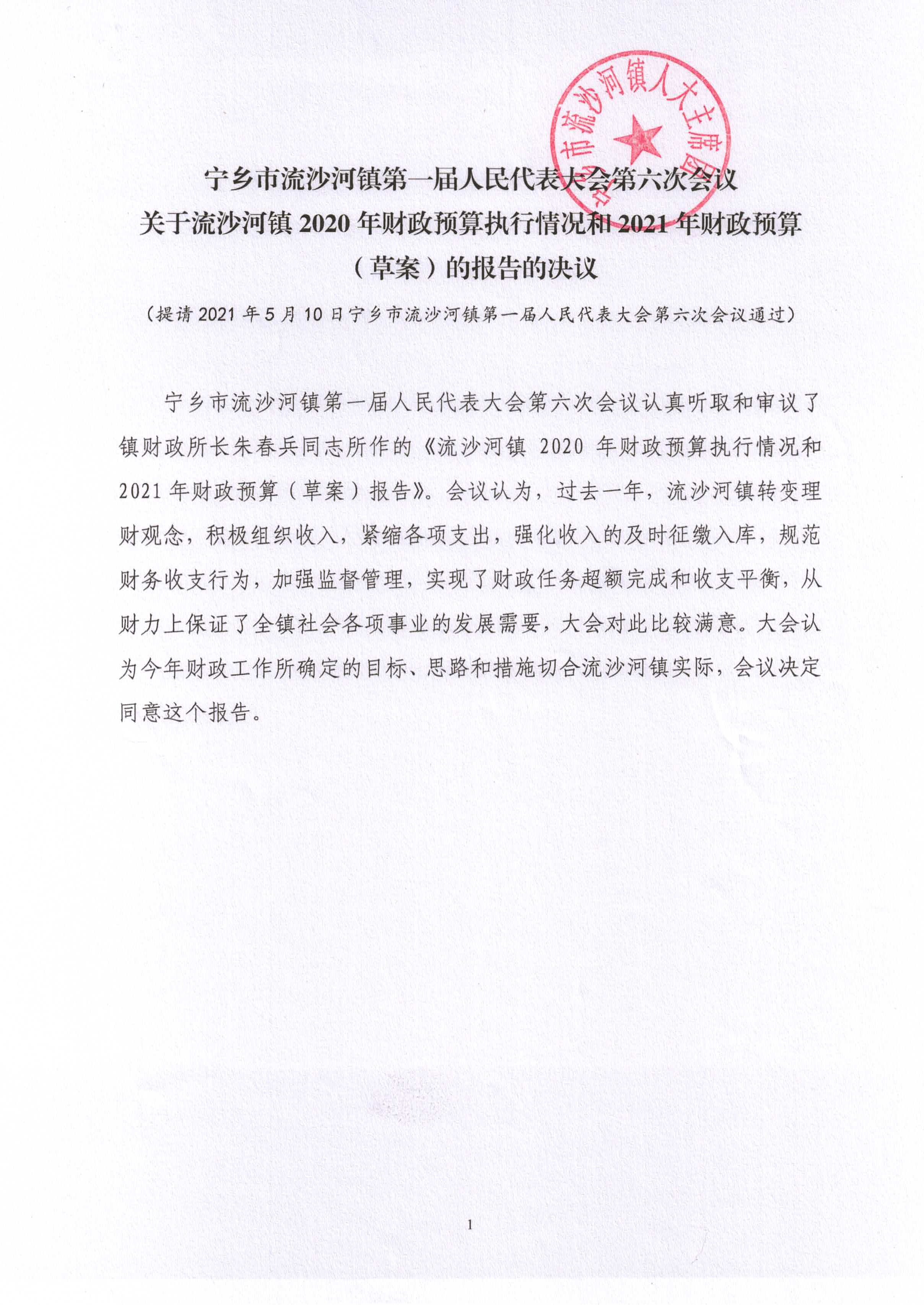 寧鄉(xiāng)市流沙河鎮(zhèn)人民政府2021年部門預算公開報告