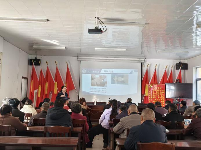 義診結束后,一場“理論+實操”相結合的健康培訓課隨即展開。面向普通村民,專家通過模擬演示,深入淺出地講解心肺復蘇術(CPR)和海姆立克急救法等基本生命支持技能;面對鎮(zhèn)衛(wèi)生院醫(yī)護人員及鴻富村村醫(yī),則系統(tǒng)梳理農村常見急癥處置流程,分享多年臨床積累的寶貴經驗。