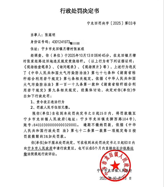 寧鄉(xiāng)市龍?zhí)镦?zhèn)人民政府行政處罰決定公示