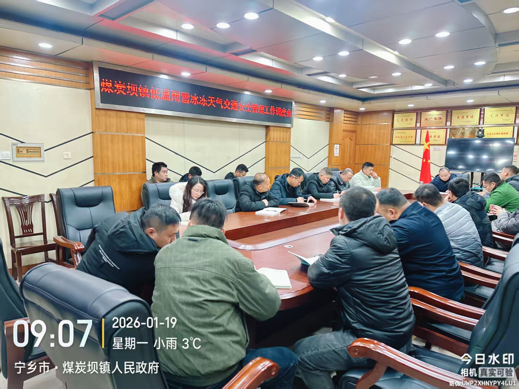 2026年1月19日上午,煤炭壩鎮戴奔奇副鎮長組織召開低溫雨雪冰凍天氣交通安全、食品安全、校車安全等安全生產工作調度會。