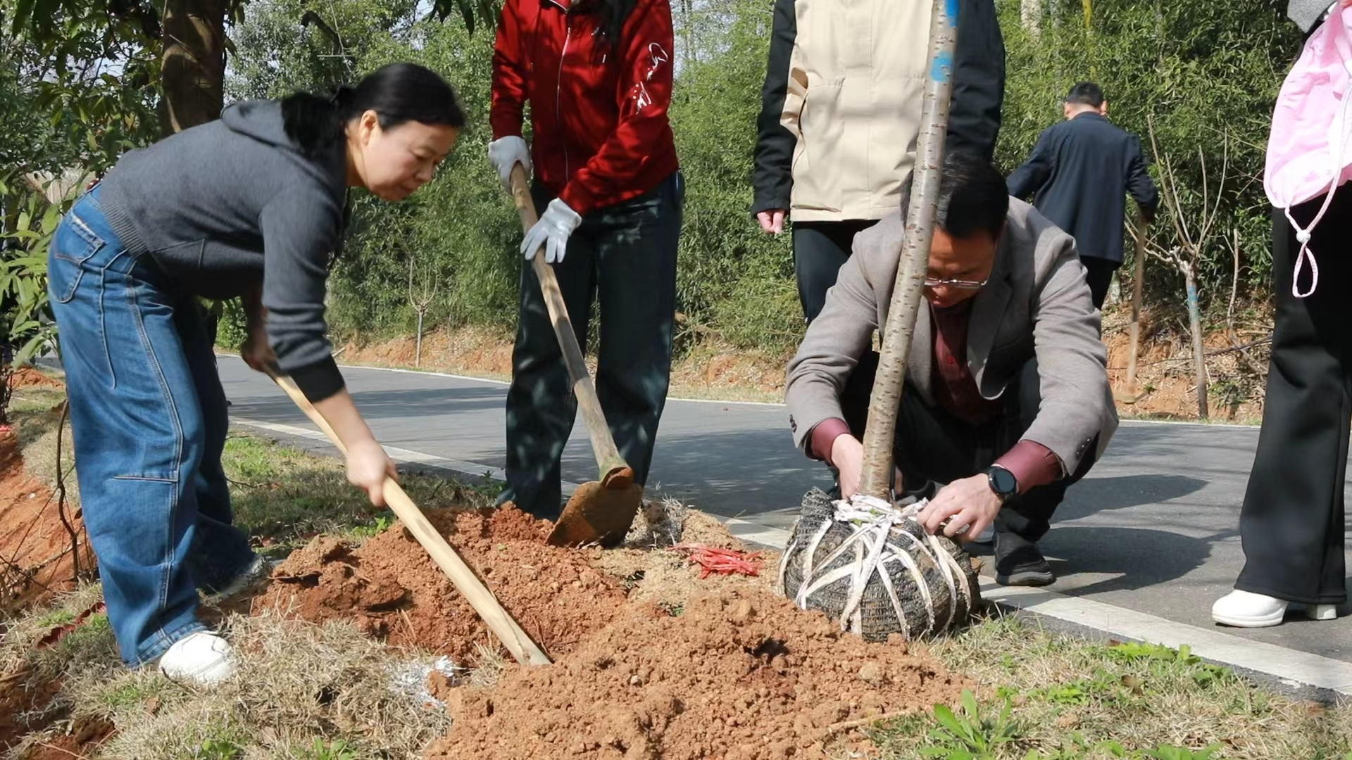 在現場,參與植樹的干部群眾三五成組、分工協作,有的揮鋤挖坑,有的扶正樹苗,有的培土壓實,一派熱火朝天的勞動景象。技術人員穿梭其間,手把手指導栽植要領:“坑要挖深,土要踩實,水要澆透,這樣樹苗才能扎根生長。”經過兩個多小時的忙碌,櫻花、碧桃、月季、梅花等觀賞樹種錯落有致地挺立在規劃區域,原本空曠的場地頓時生機盎然。