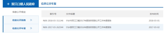 寧鄉市雙江口鎮2018年政府信息公開工作年度報告