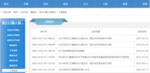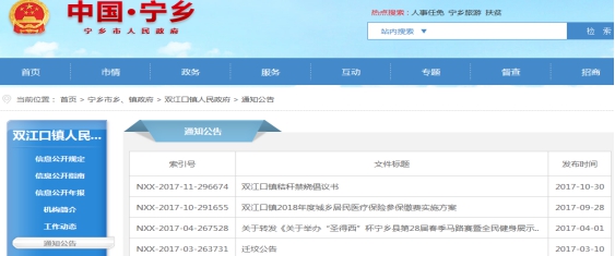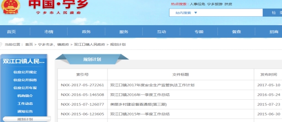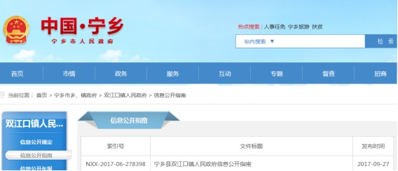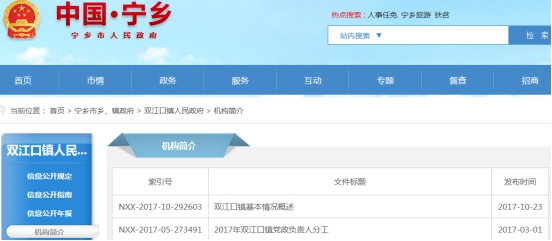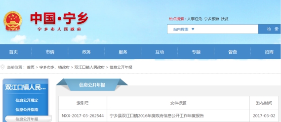 寧鄉(xiāng)市雙江口鎮(zhèn)2017年政府信息公開工作年度報(bào)告