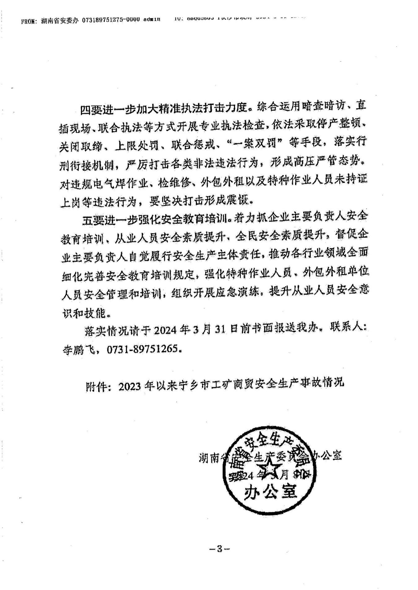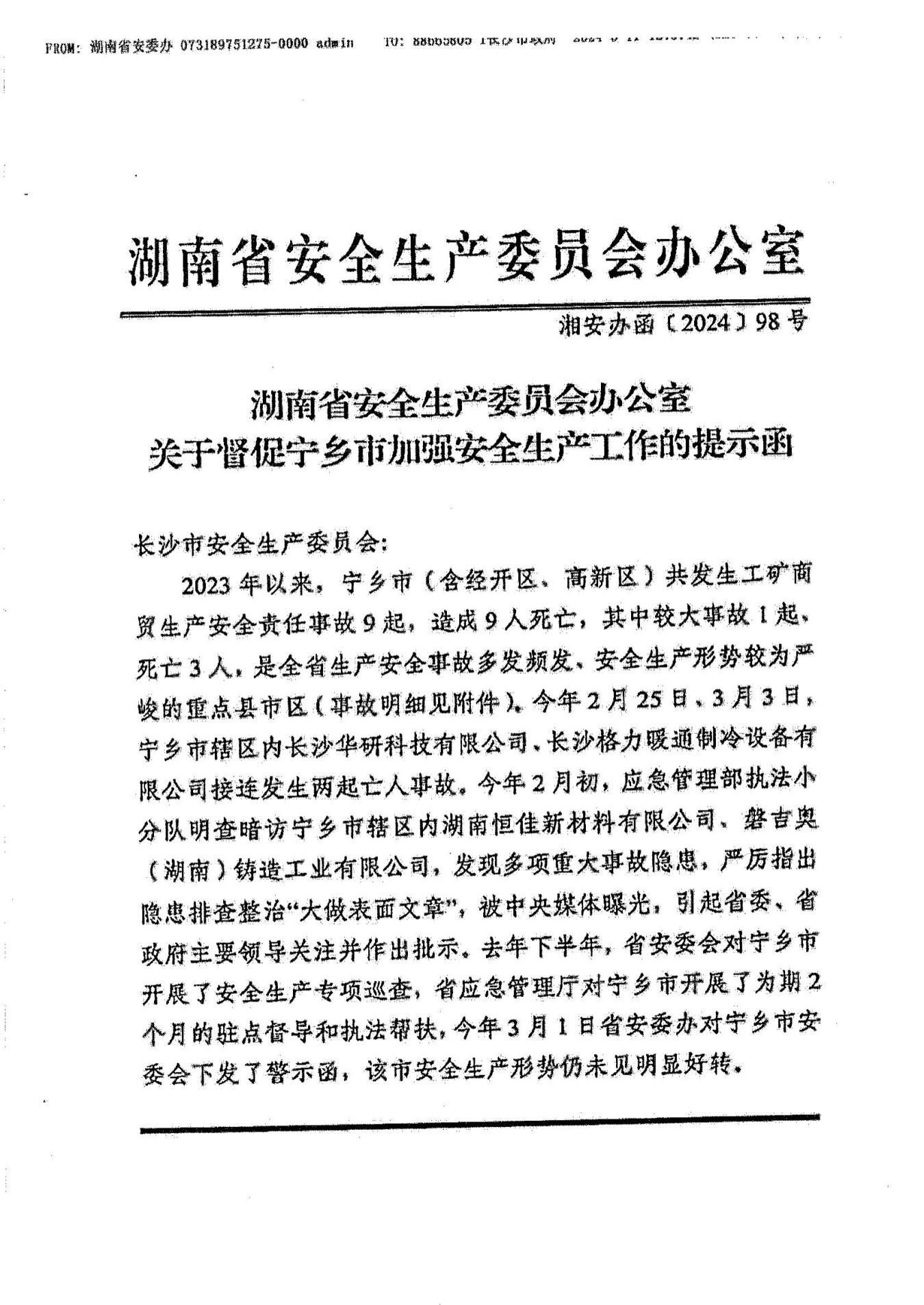 附件:1.湖南省安全生產委員會辦公室關于督促寧鄉市加強安全生產工作的提示函