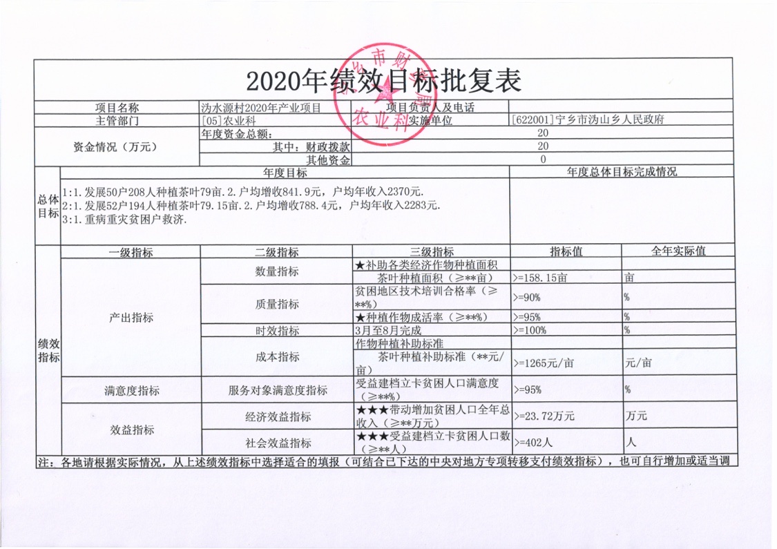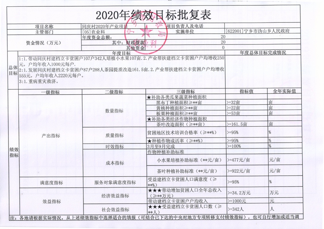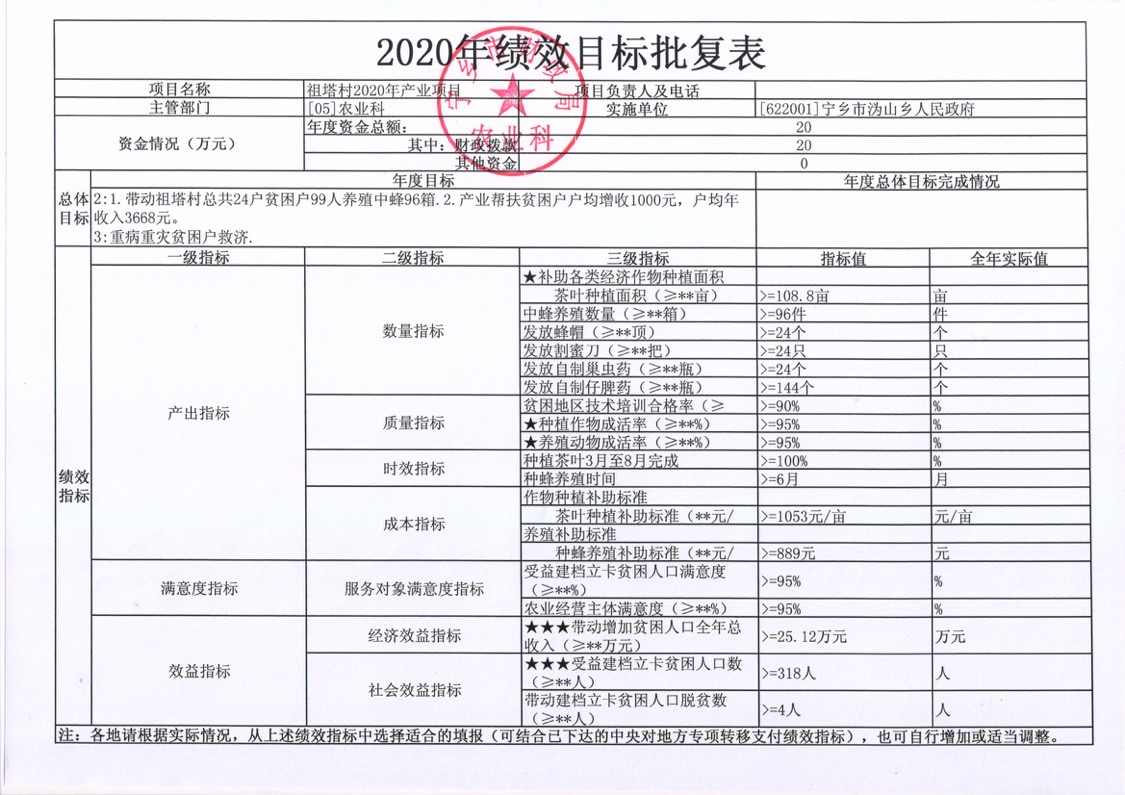 溈山鄉(xiāng)2020年產(chǎn)業(yè)扶貧項(xiàng)目績(jī)效目標(biāo)批復(fù)