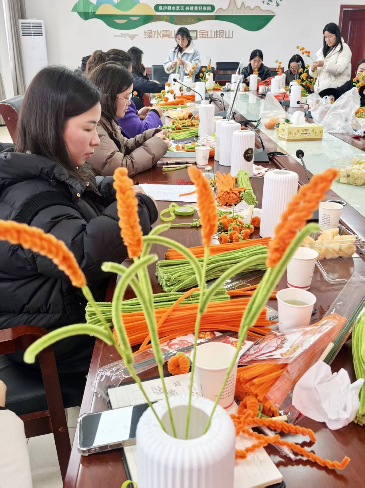 活動在“她力量·新作為”為主題的座談會中拉開帷幕,來自基層一線的女干部代表們踴躍發言,結合鄉村振興、服務群眾等工作中的實踐經歷暢談感悟,交流經驗。會上,鄉黨委政府相關負責人從“顧己、悅己、慧己”三個方面對全體女干部提出了殷切希望,勉勵大家在投身事業的同時關愛自身、樂享生活、增長智慧。隨后開展“柿柿如意”創意手工坊,大家親手制作扭扭棒柿子盆栽,在愉悅的動手協作中舒緩壓力,感受組織關懷。