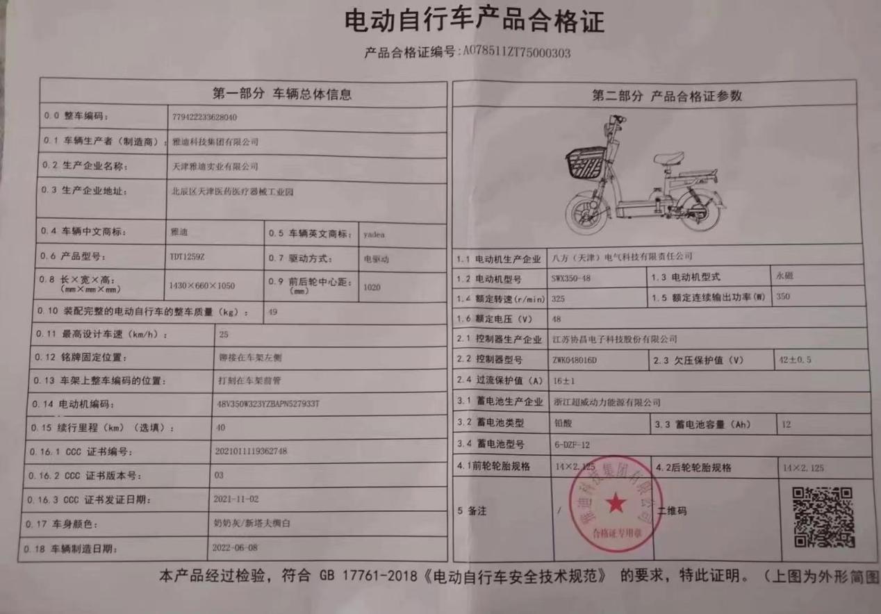 (1)不符合“國標”的電動自行車。(“國標”電動自行車的兩大特征:一是有國家強制3C認證證書,二是有腳踏騎行功能。)