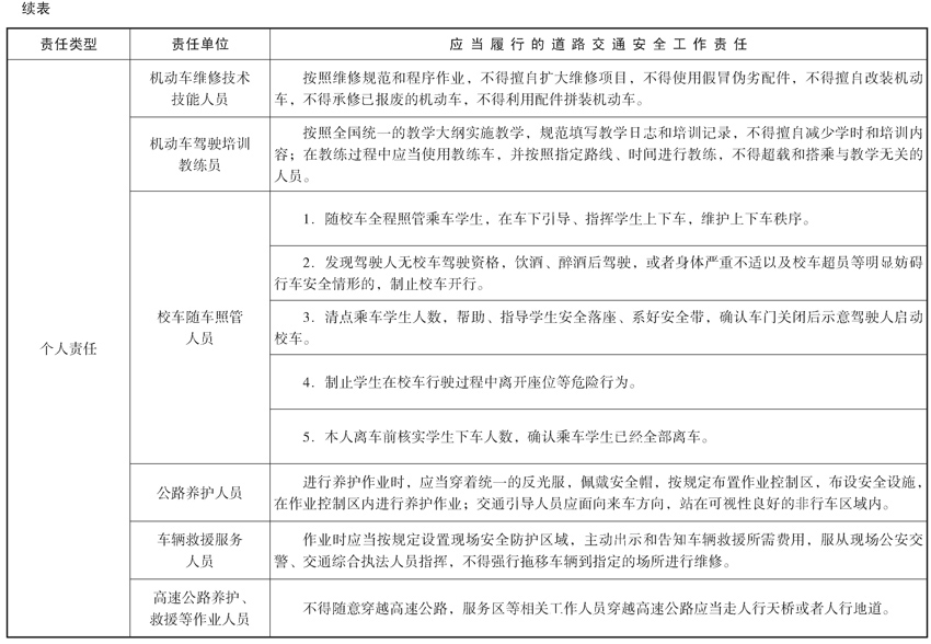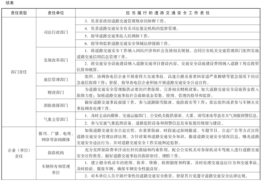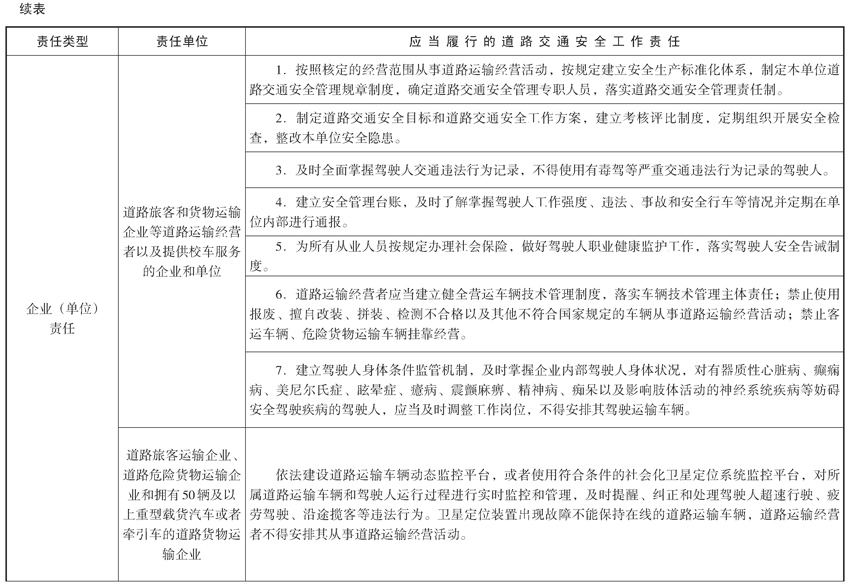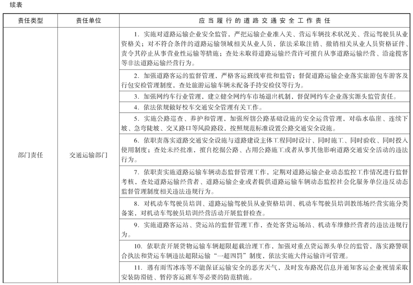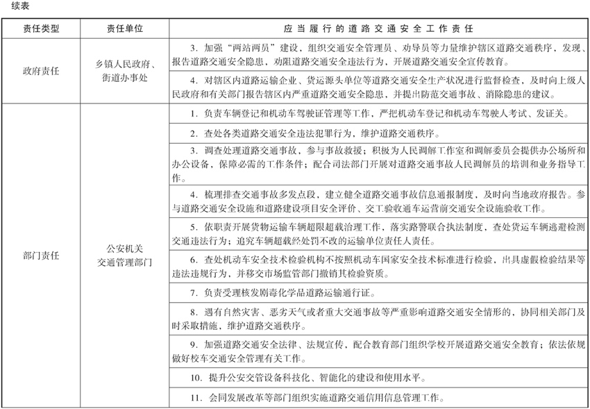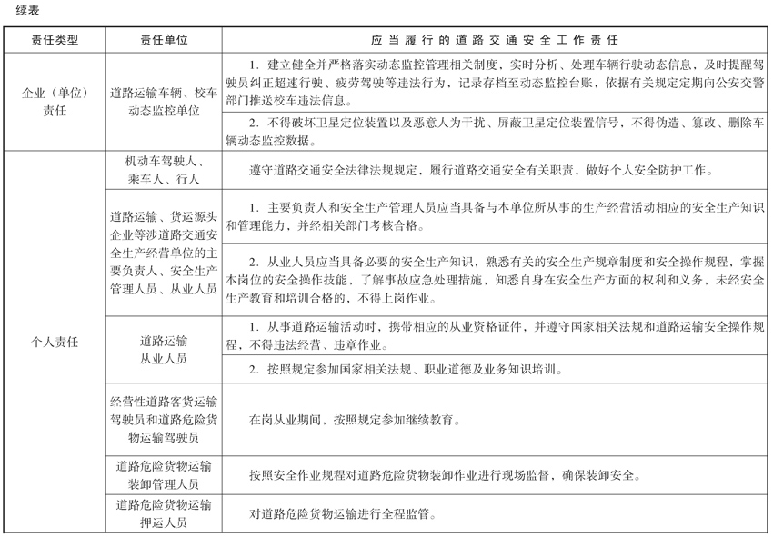 第三條 道路交通安全責任包括政府領導責任、部門監管責任、企業(單位)主體責任以及公民個人責任。