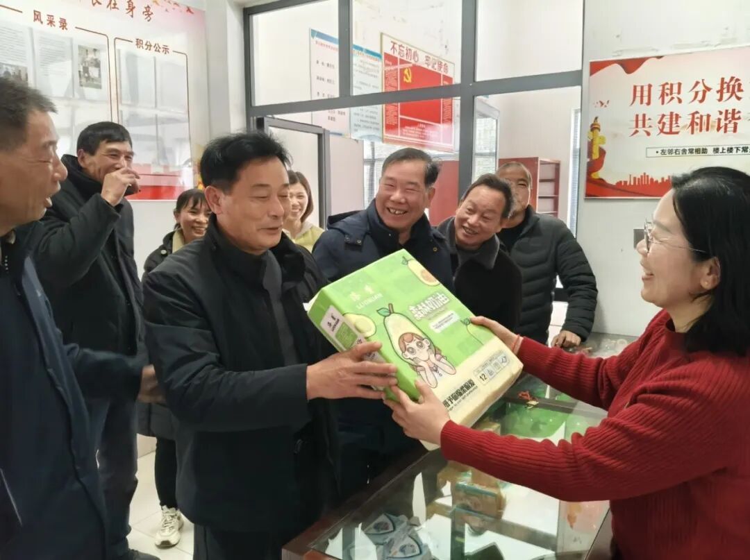 “數(shù)字積分”推動“大作為”。創(chuàng)新推行“鄰長積分超市”,積分可兌換物資或優(yōu)先推薦入黨、入村“兩委”。各村設定走訪宣傳、問題反饋、移風易俗等加分項,由片長審核積分,申報兌換更便捷。數(shù)字積分機制推行以來,“三長”累計積分超23000分,表彰優(yōu)秀“三長”120人次(含6名市級“比鄰星”),并推薦6人入黨、4人納入村級后備干部,有效激發(fā)了“三長”隊伍干事熱情。