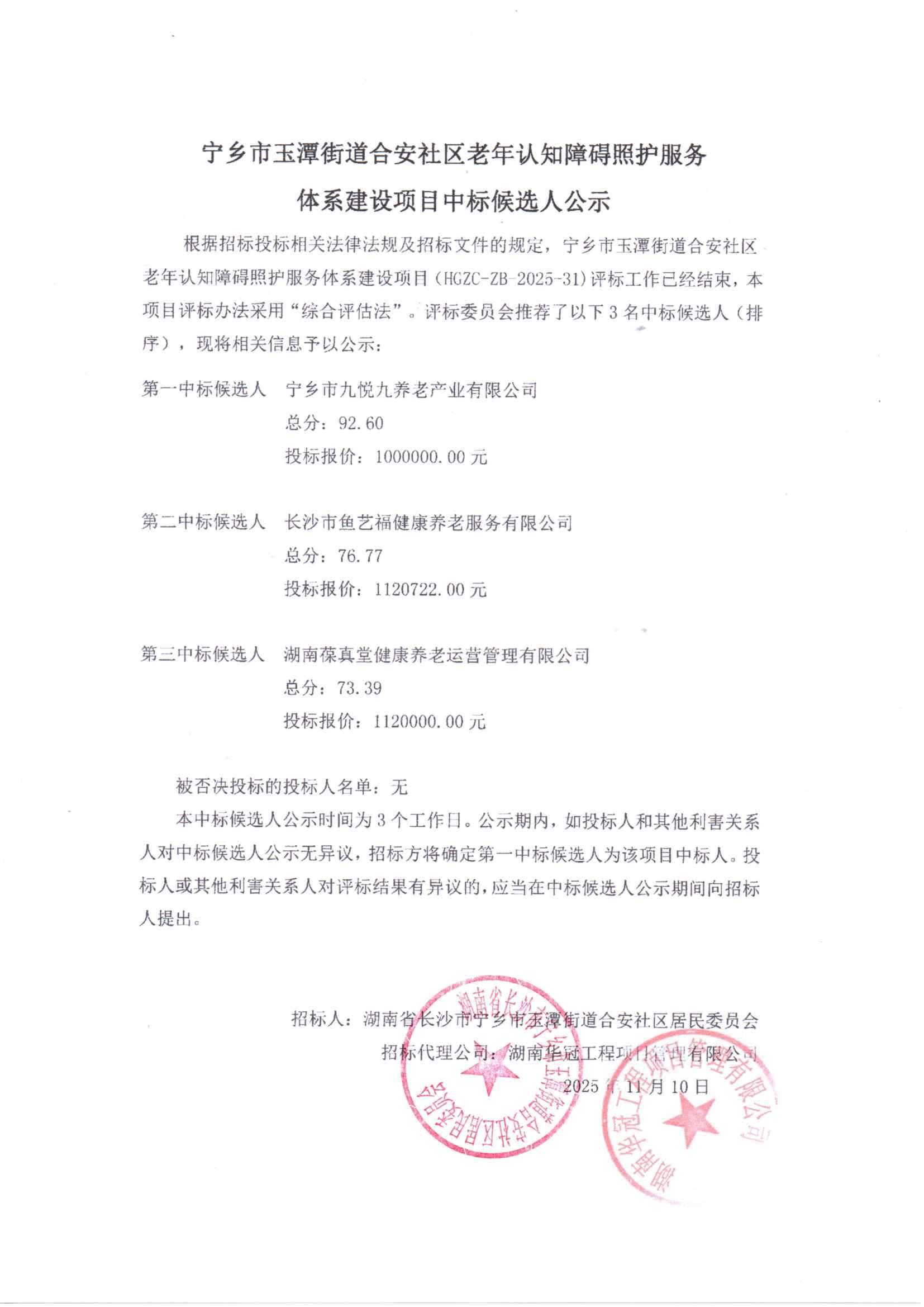 寧鄉(xiāng)市玉潭街道合安社區(qū)老年認(rèn)知障礙照護(hù)服務(wù)體系建設(shè)項(xiàng)目中標(biāo)候選人公示