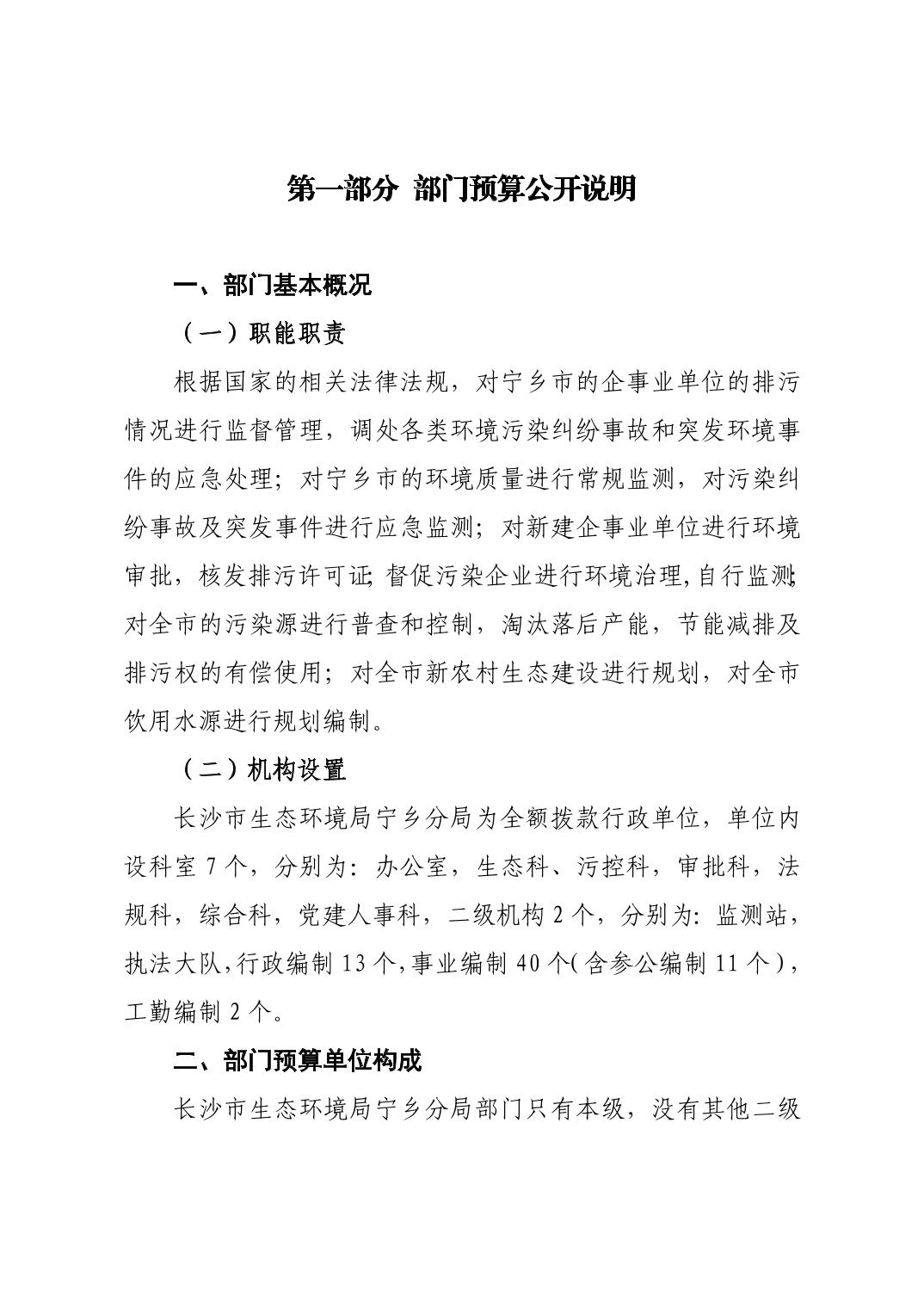 長沙市生態環境局寧鄉分局2025年部門預算公開