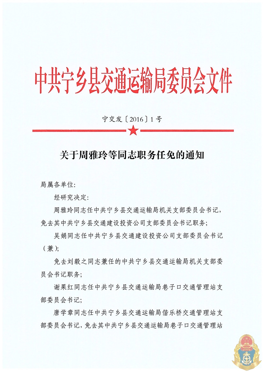 首頁 > 政務公開 > 部門信息公開目錄 > 政府工作部門 > 寧鄉市交通運輸局 > 人事信息