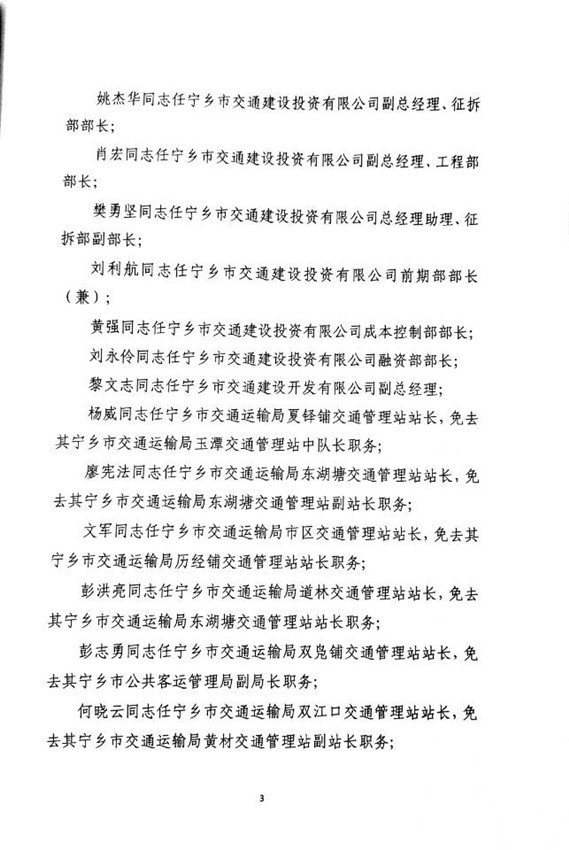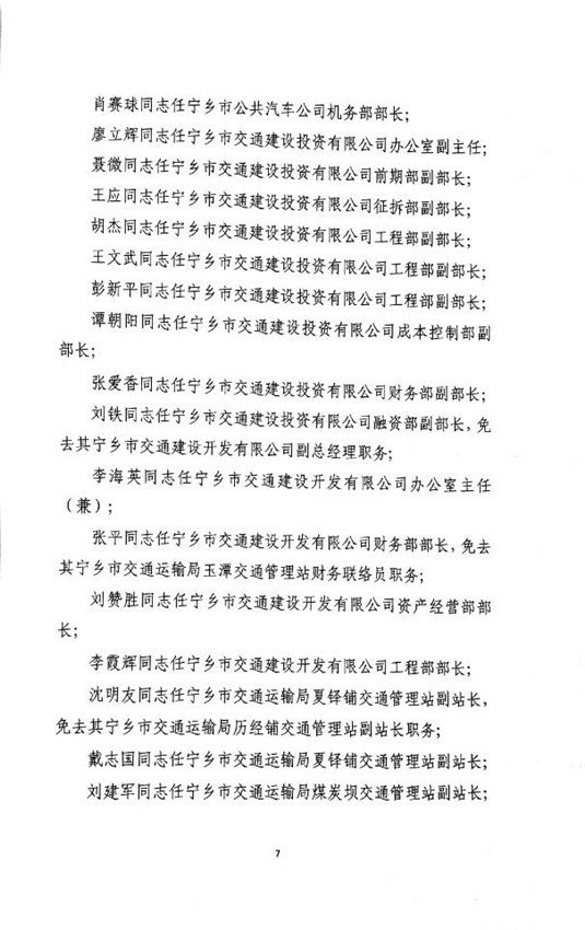首頁 > 政務公開 > 部門信息公開目錄 > 政府工作部門 > 寧鄉市交通運輸局 > 人事信息