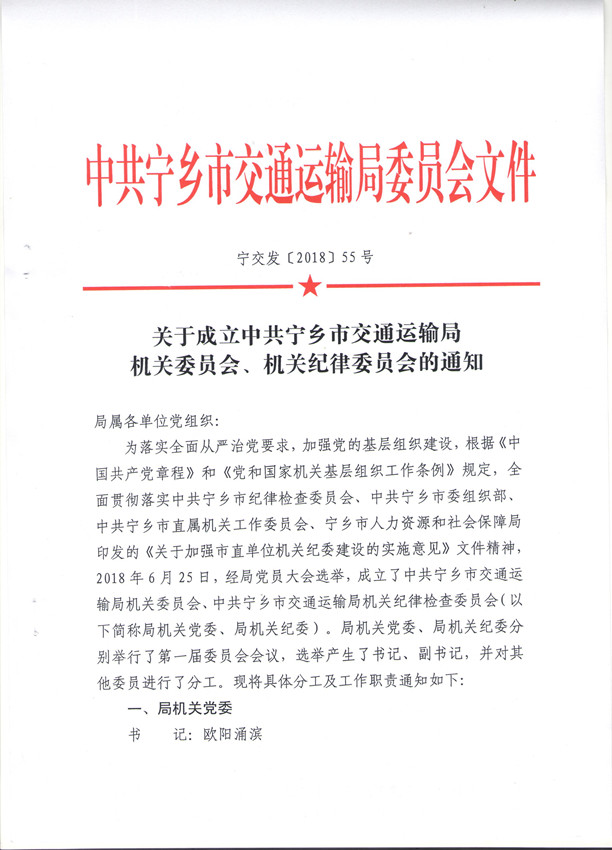關于成立中共寧鄉(xiāng)市交通運輸局機關委員會、機關紀律委員會的通知