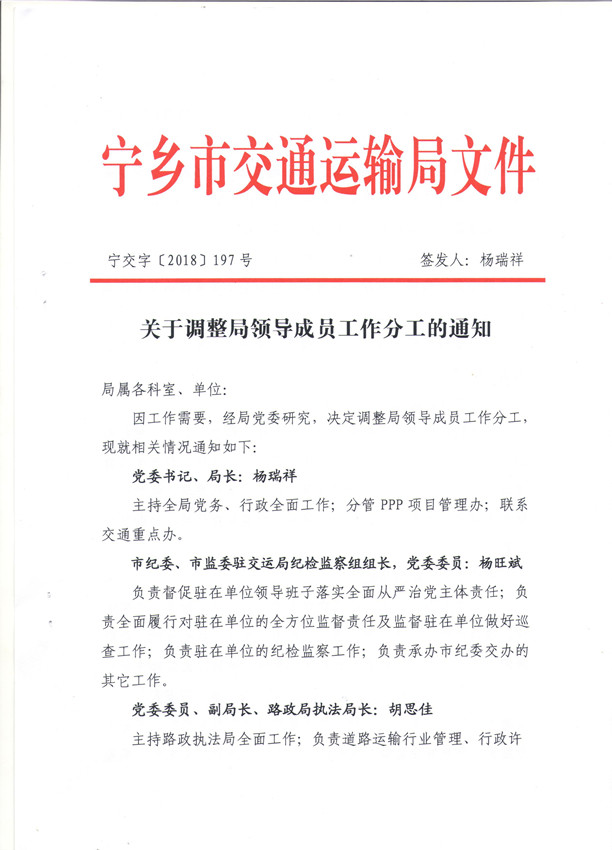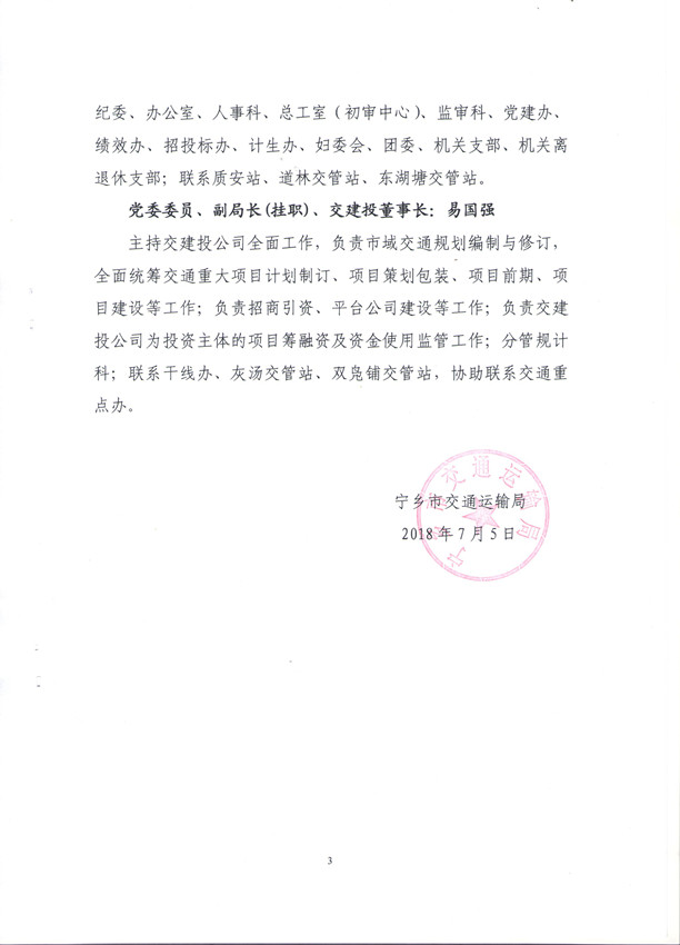 首頁 > 政務公開 > 部門信息公開目錄 > 政府工作部門 > 寧鄉市交通運輸局 > 人事信息