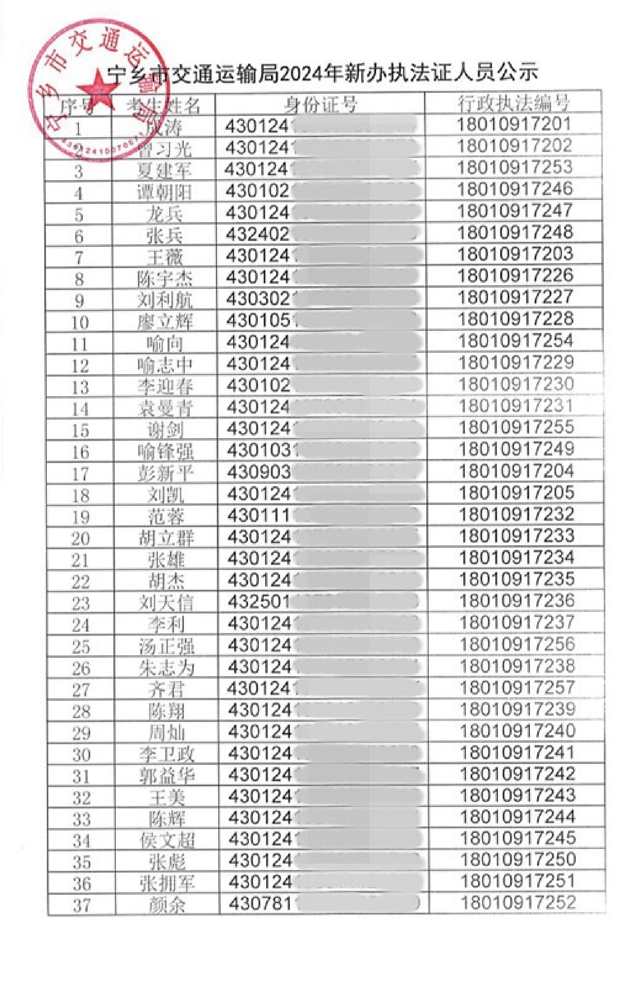 寧鄉(xiāng)市交通運輸局2024年新辦執(zhí)法證人員