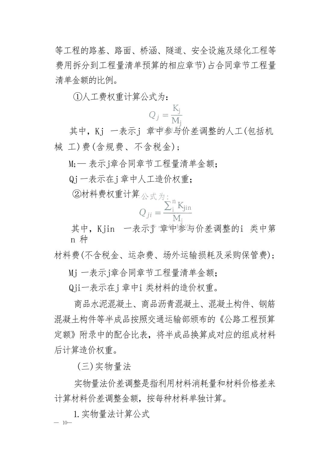 湖南省公路工程項目人工和主要材料價差調整指導性意見