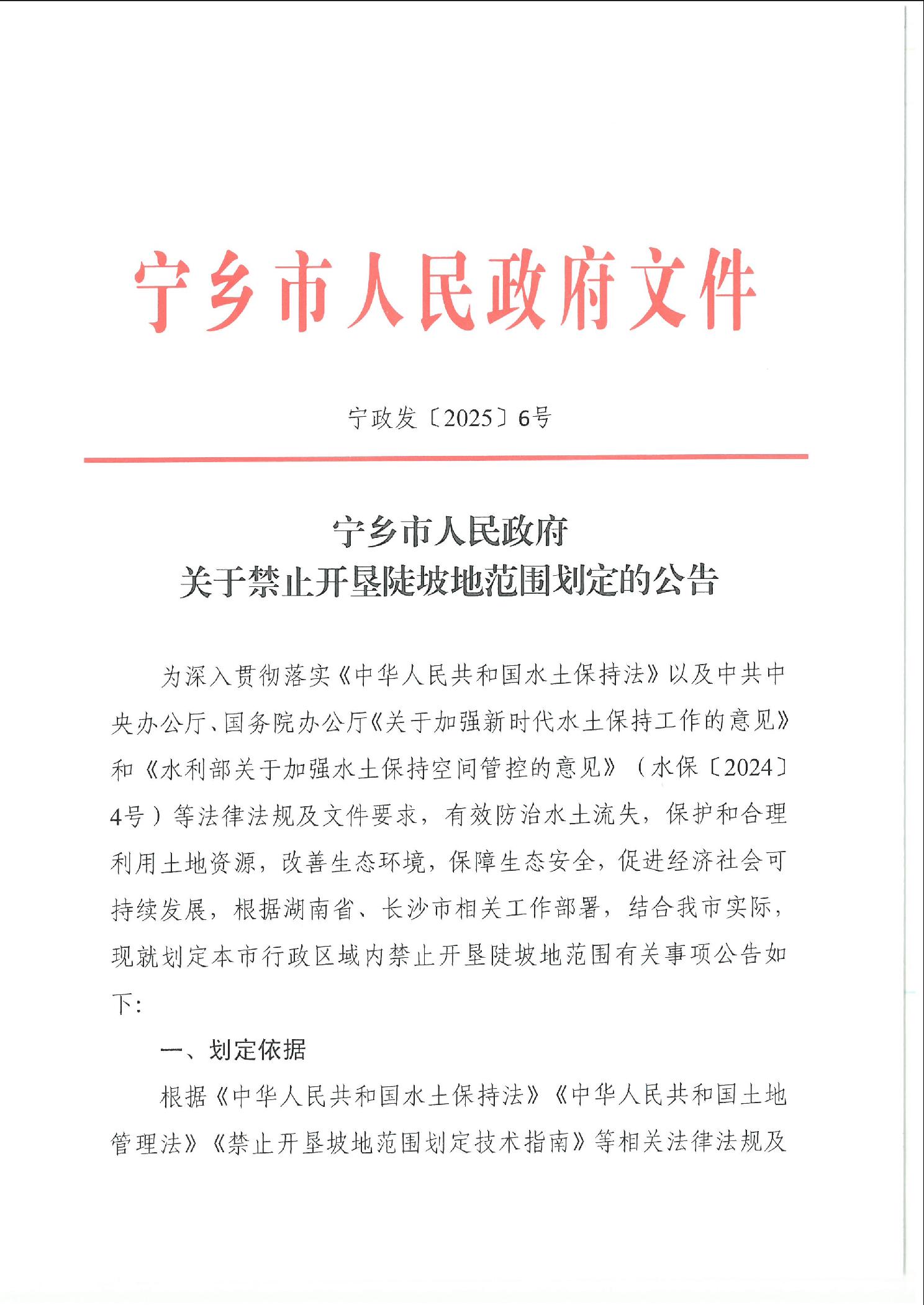 寧鄉市人民政府關于禁止開墾陡坡地范圍劃定的公告