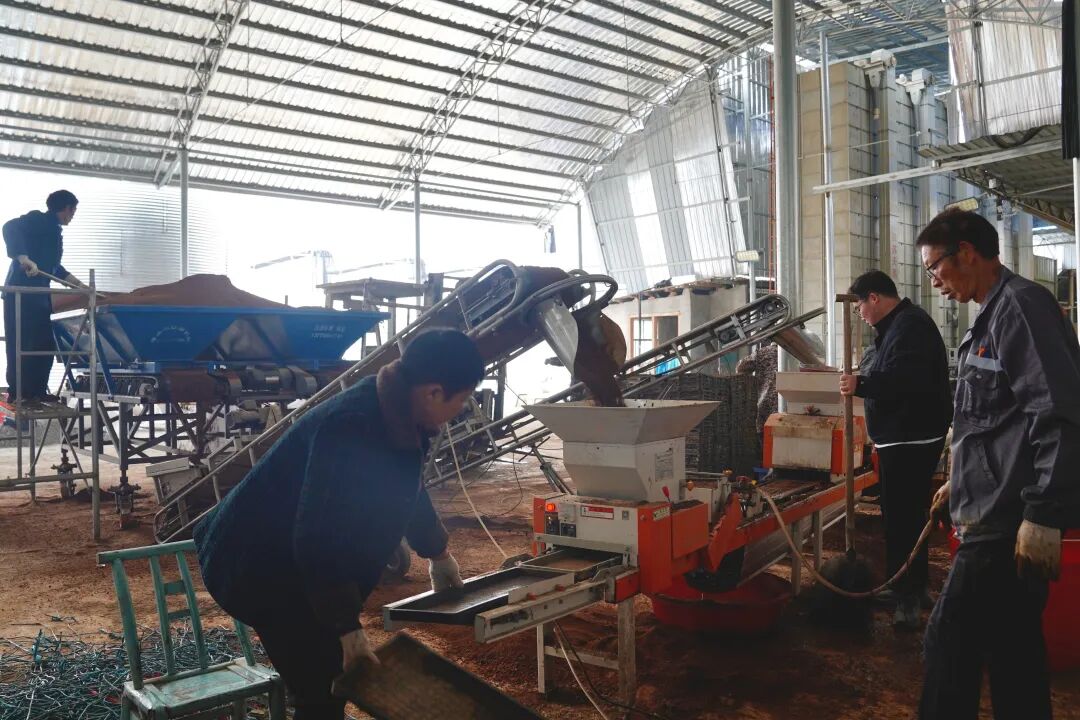 春為歲首,農為行先。3月9日,青山橋鎮石獅橋村石軍輝家庭農場內暖意融融,一派熱火朝天的繁忙景象。十余名村民分工協作、默契配合,在育秧流水線上有序開展浸種、覆土、裝盒、濕水、打包、上車等作業,一盤盤秧盤整齊碼放、源源不斷運往育秧棚,孕育著豐收的希望。
