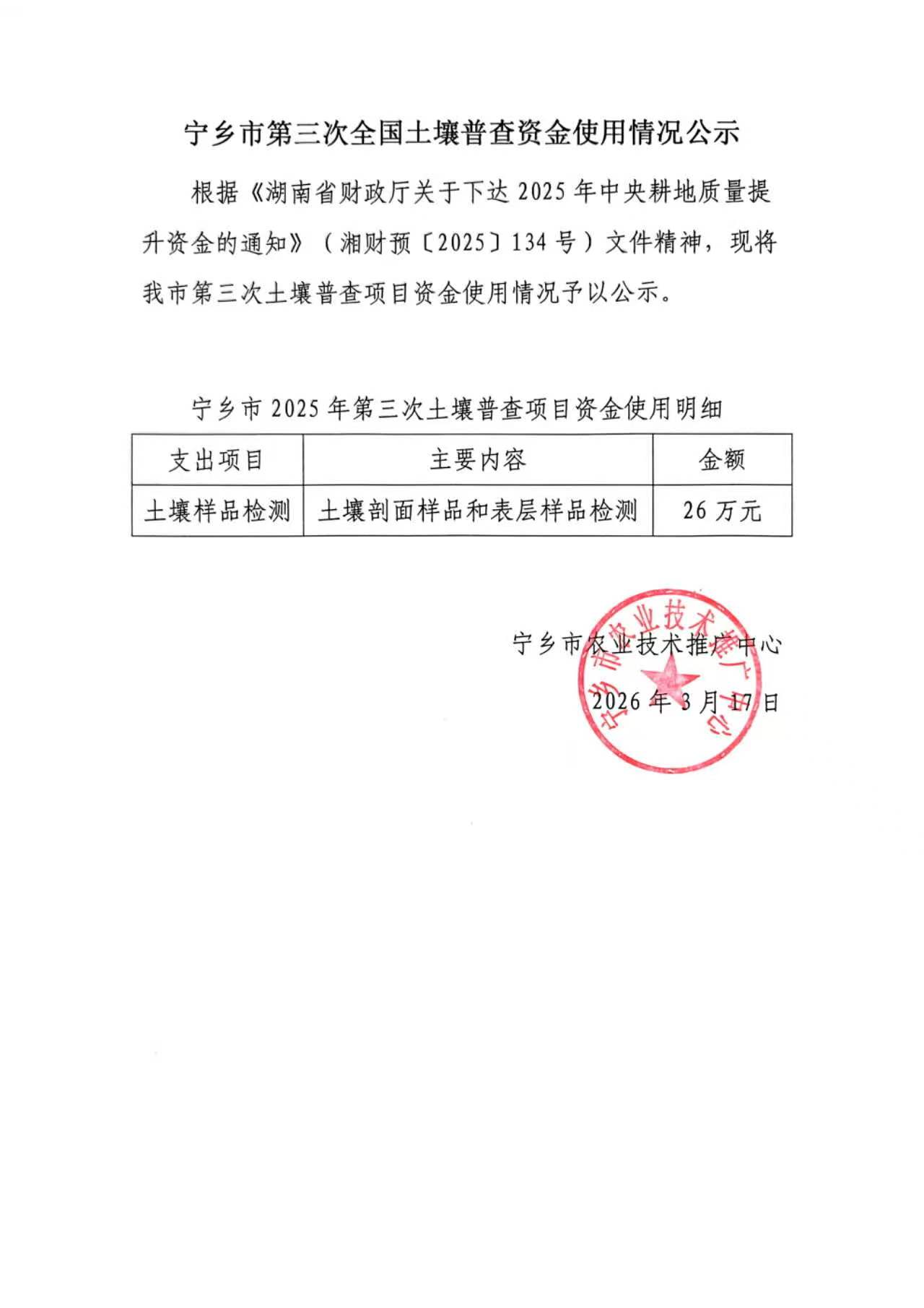 寧鄉市第三次全國土壤普查資金使用情況公示