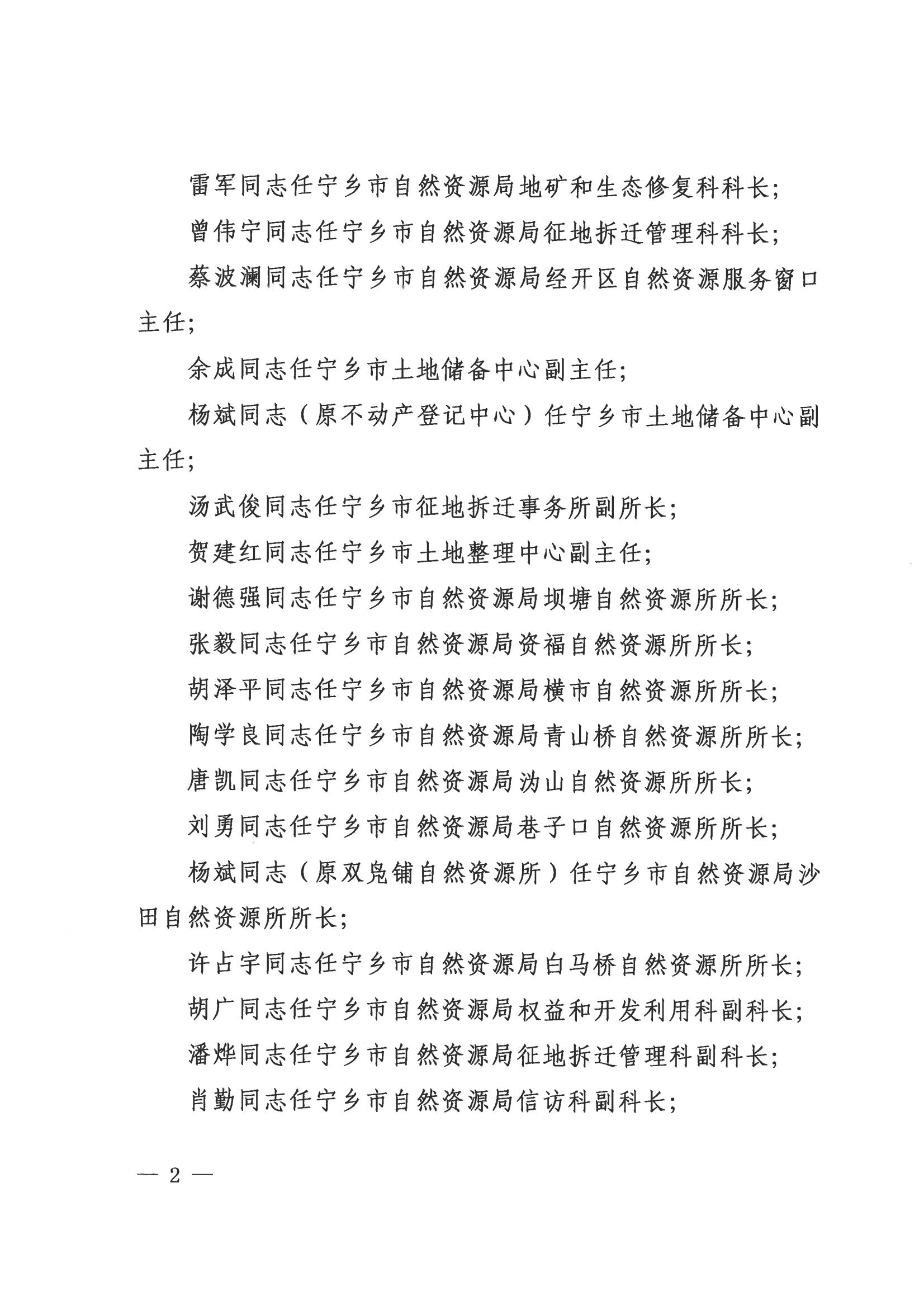 中共寧鄉市自然資源局黨組關于喻勇等同志職務任免的通知