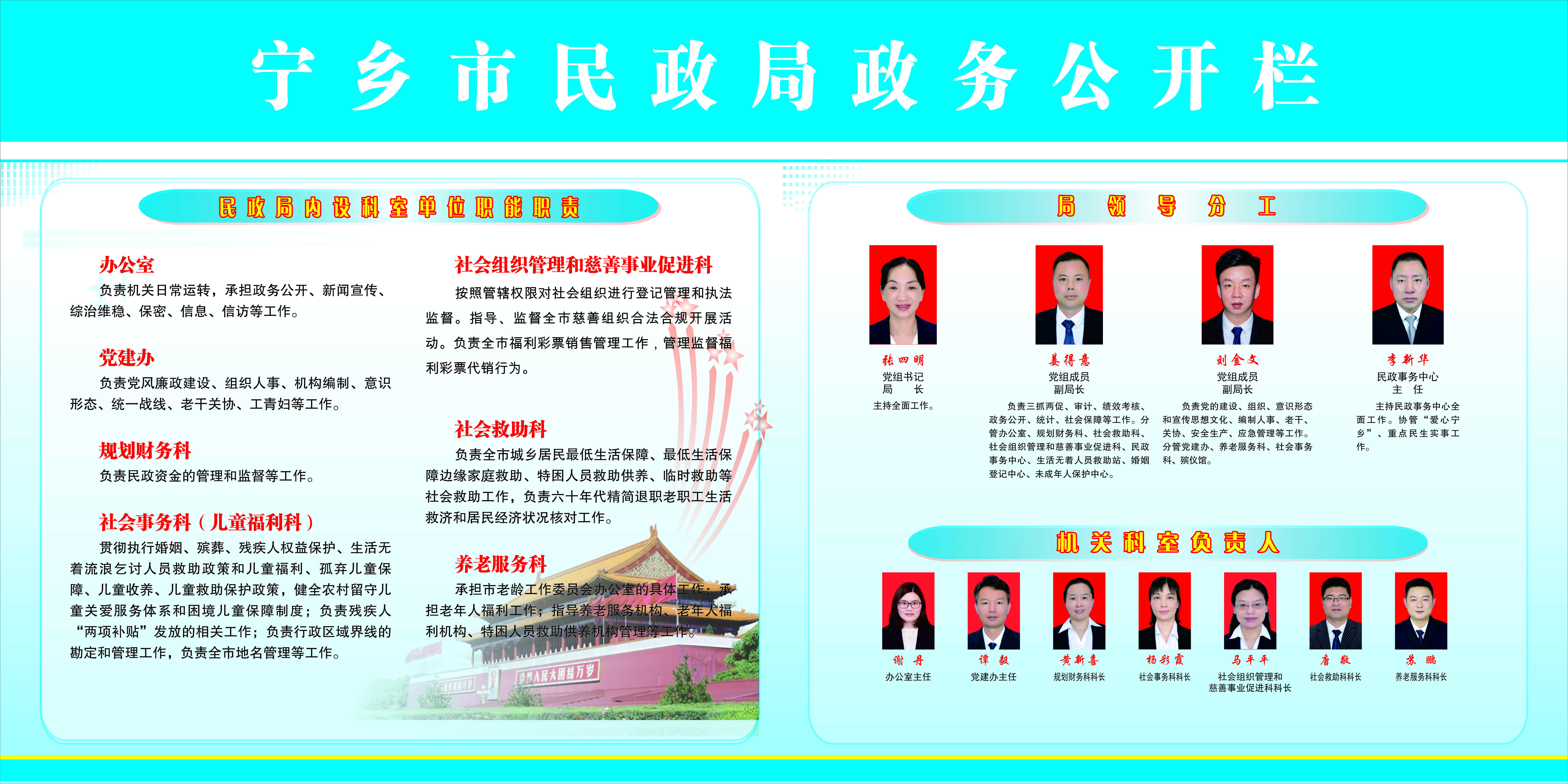 民政局領導分工、機關科室負責人信息