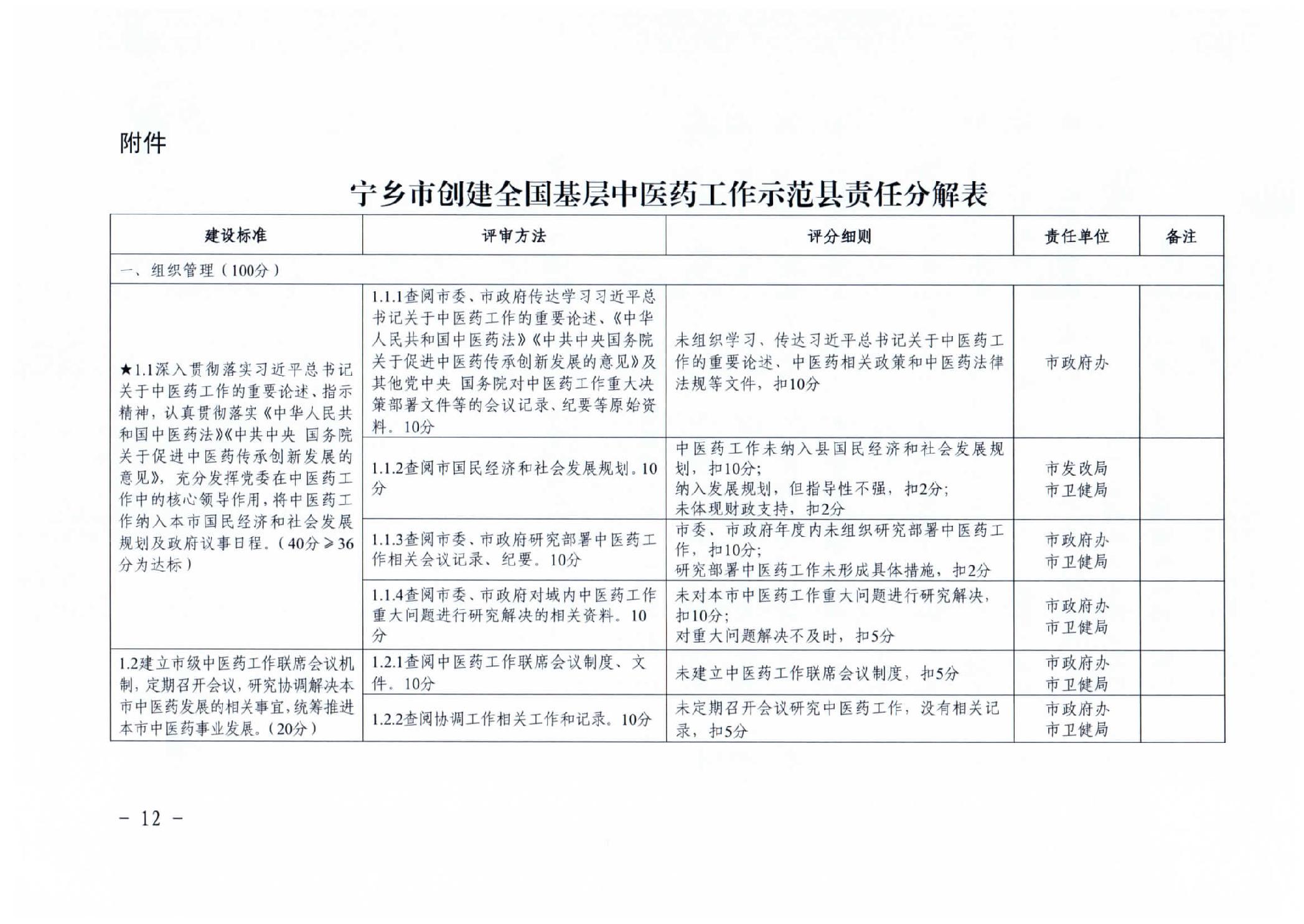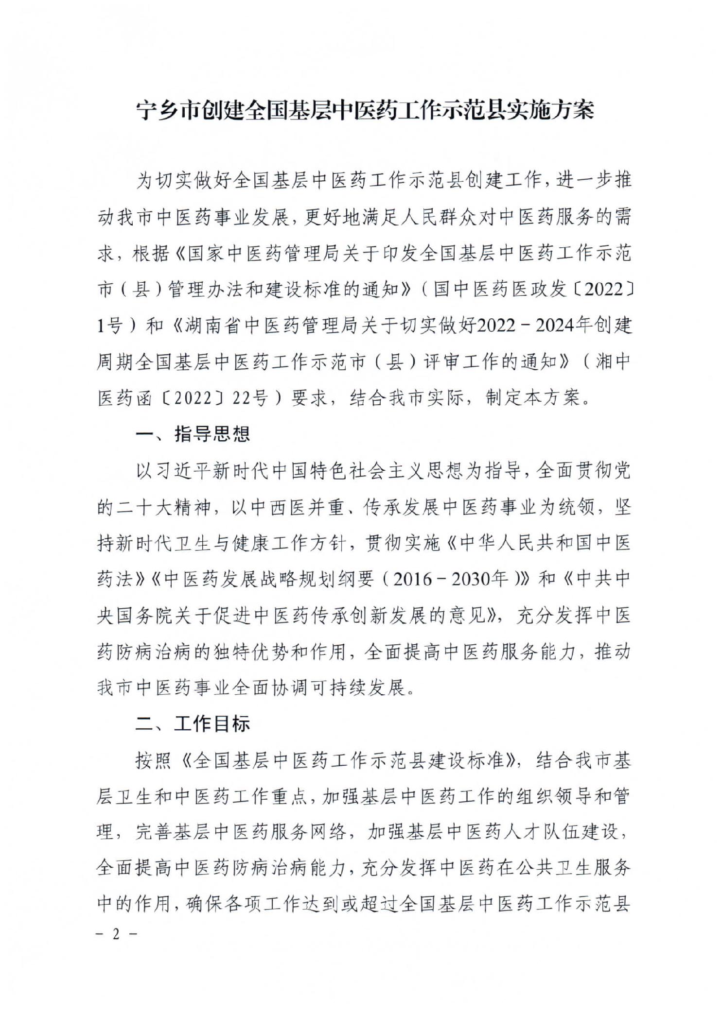 1. 政策解讀:《寧鄉市創建全國基層中醫藥工作示范縣實施方案》