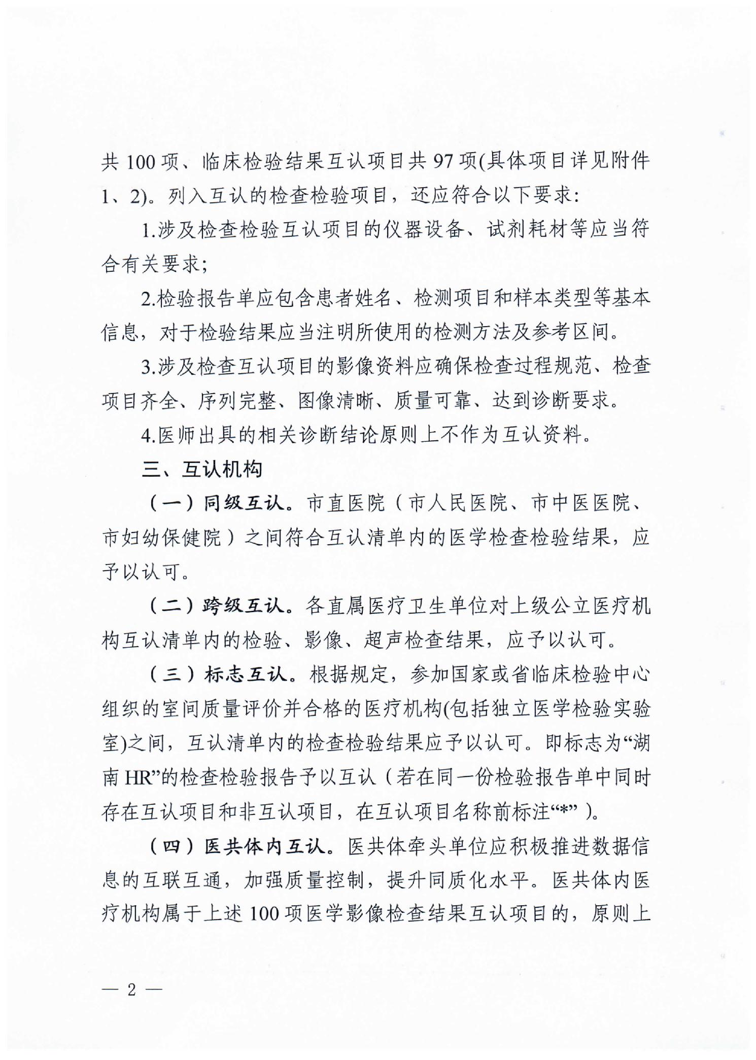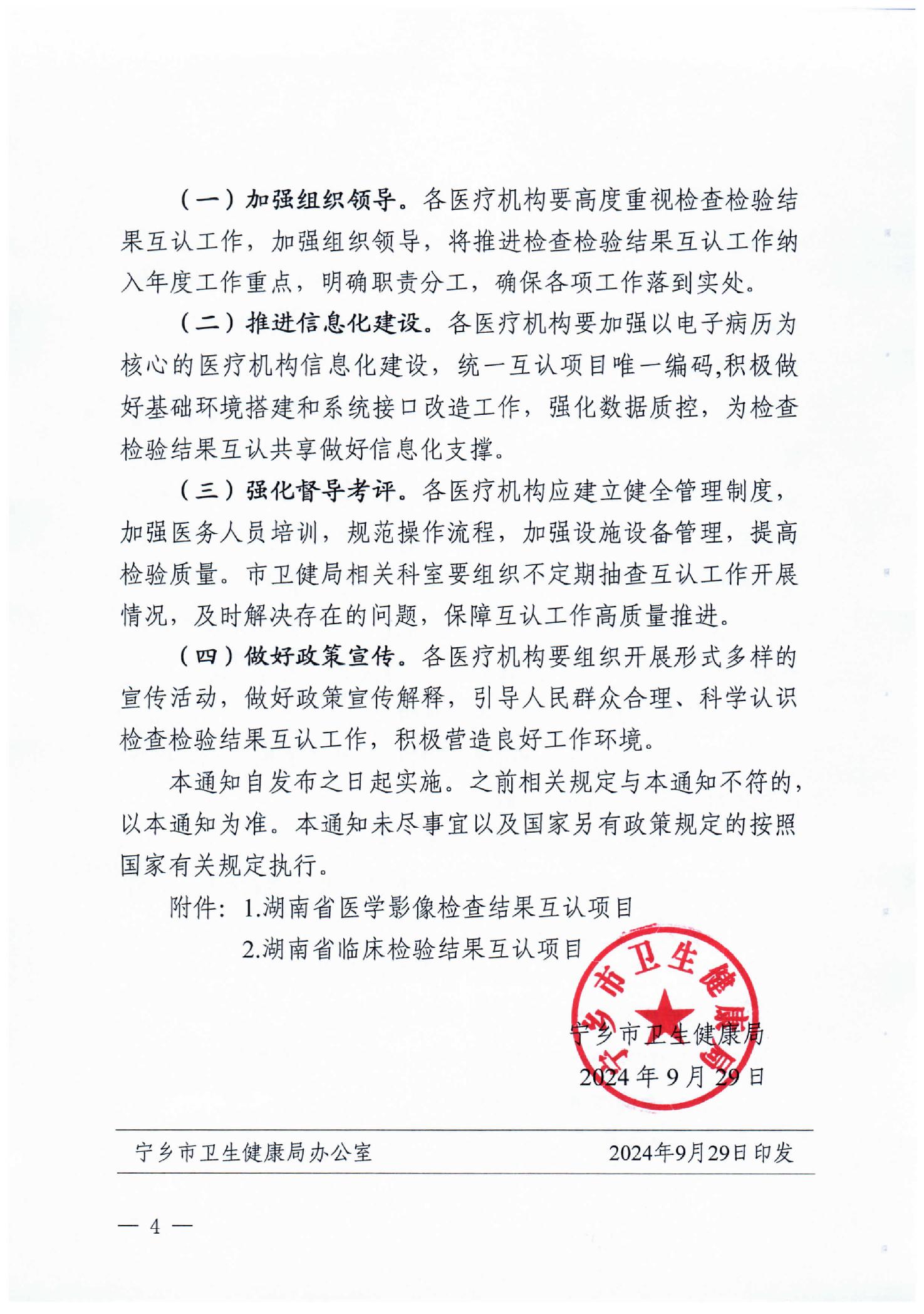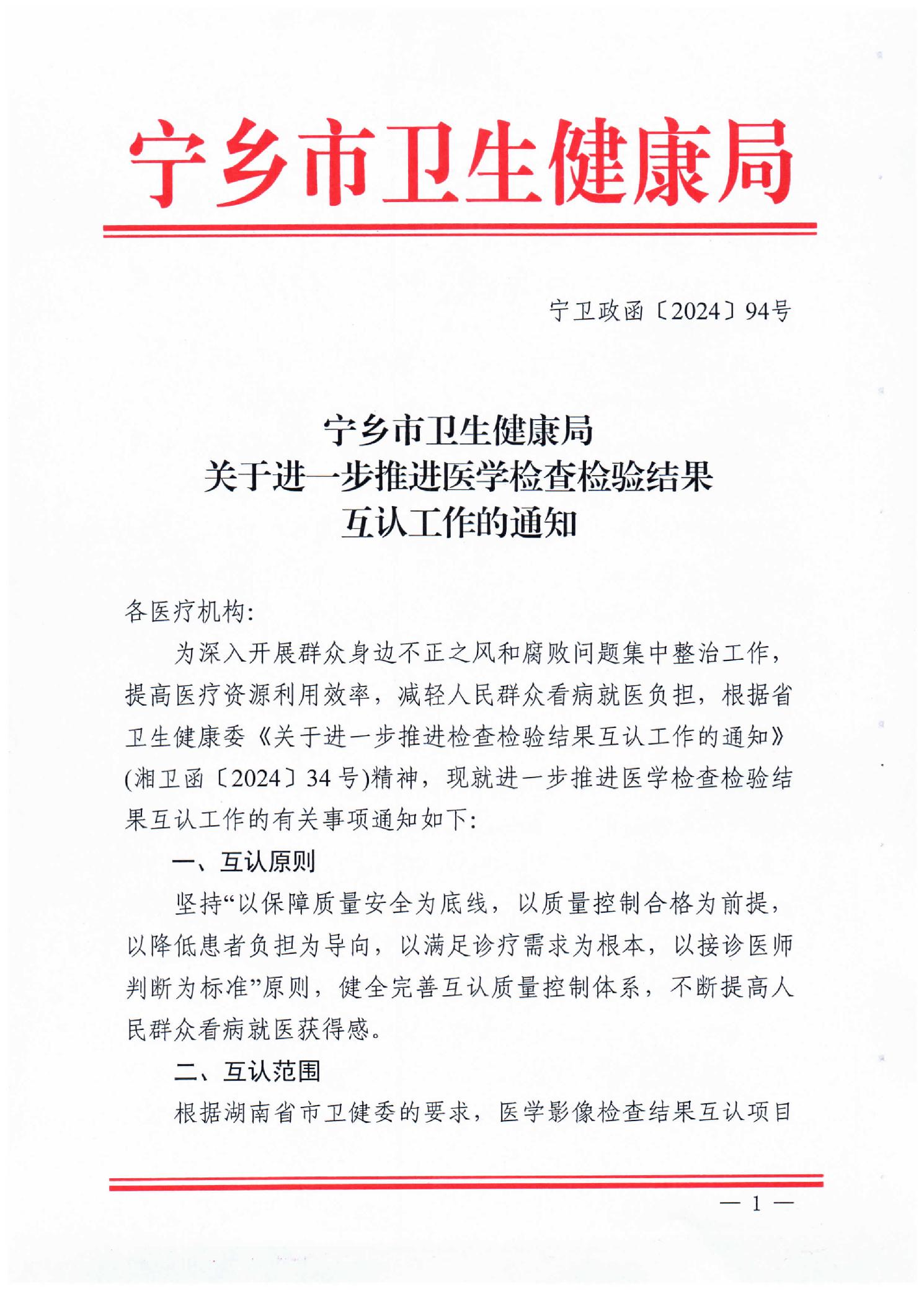 寧鄉市衛生健康局關于進一步推進醫學檢查檢驗結果互認工作的通知