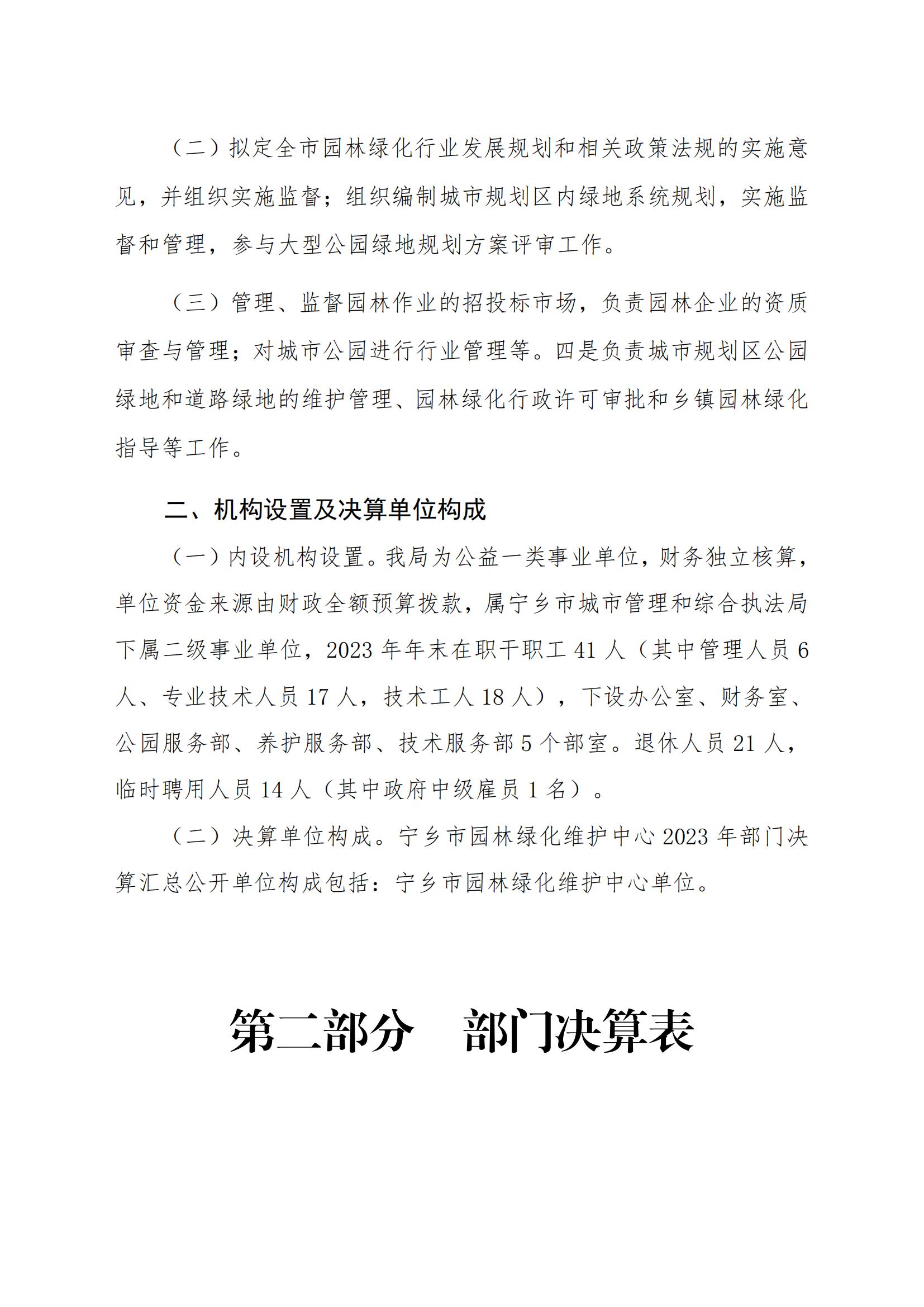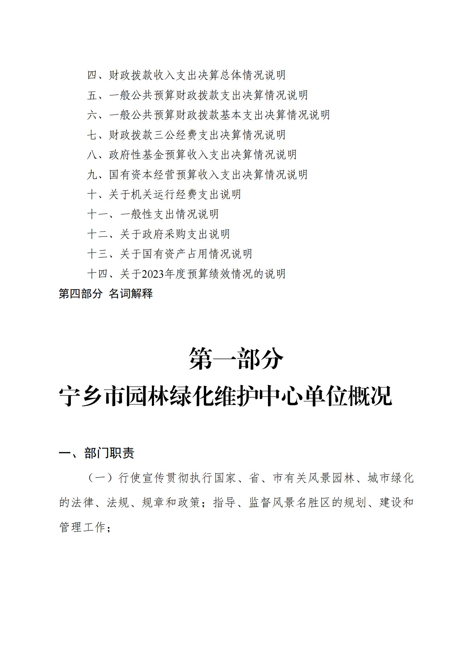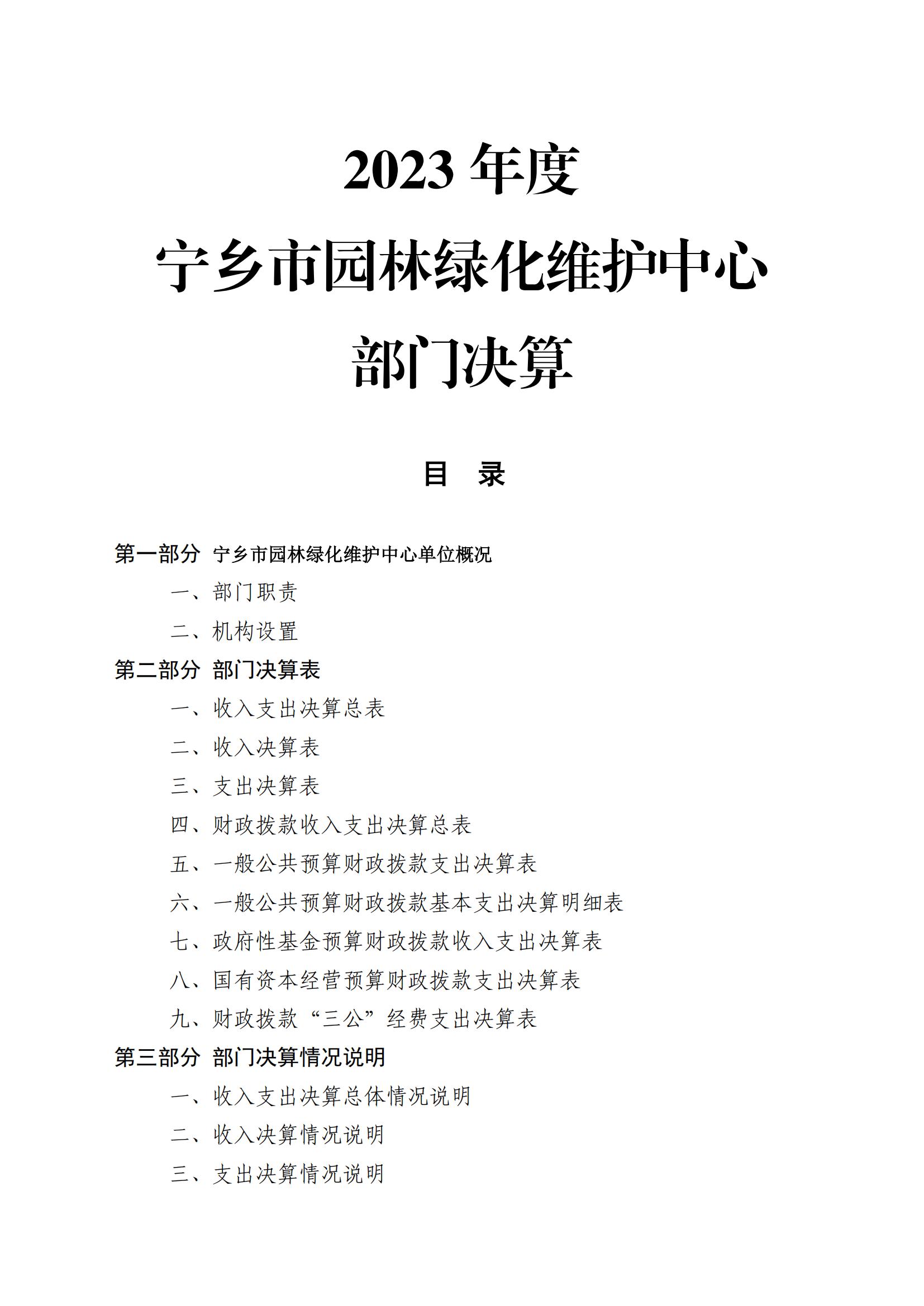 2023年度寧鄉(xiāng)市園林綠化維護中心部門決算