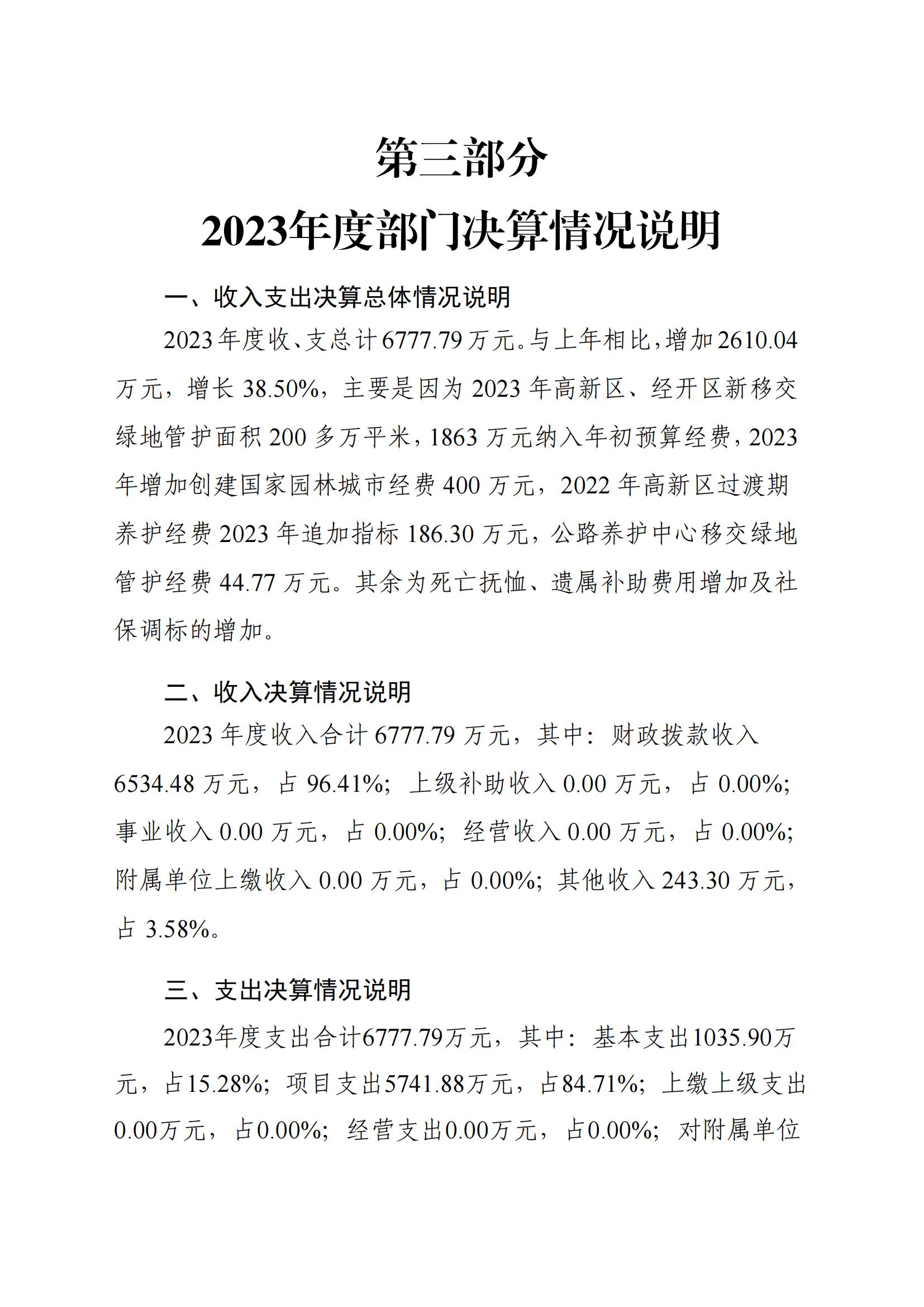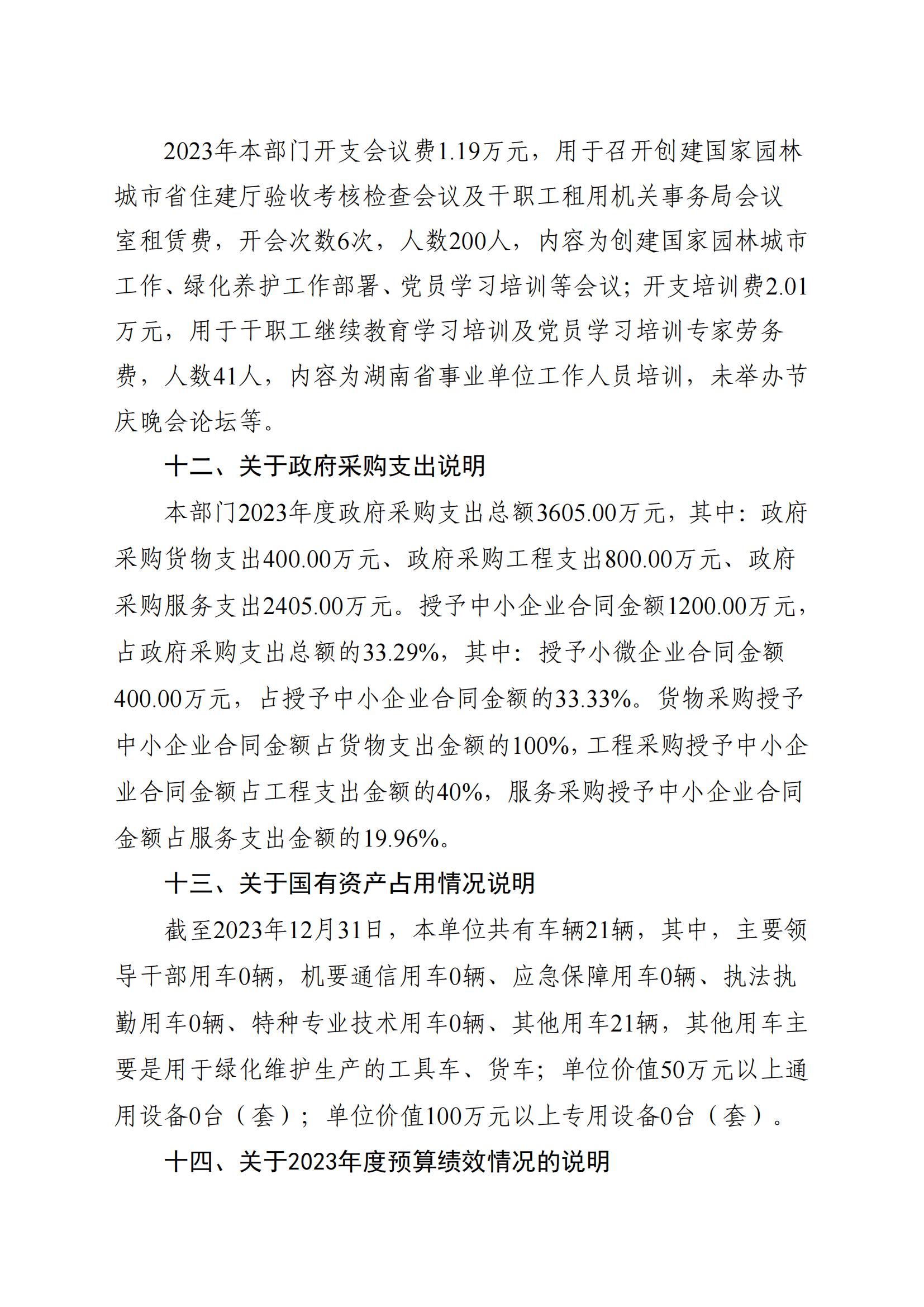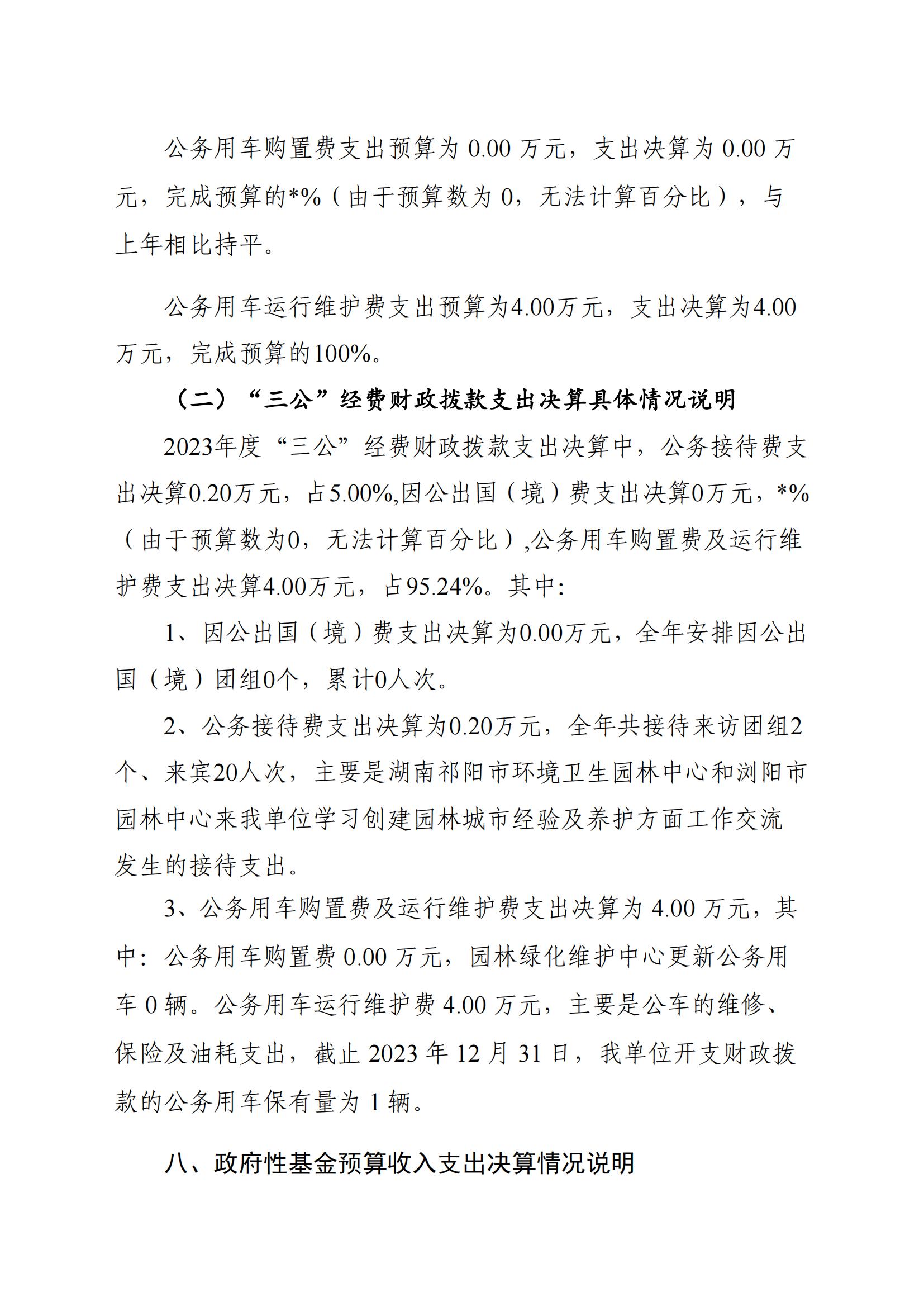 2023年度寧鄉(xiāng)市園林綠化維護中心部門決算