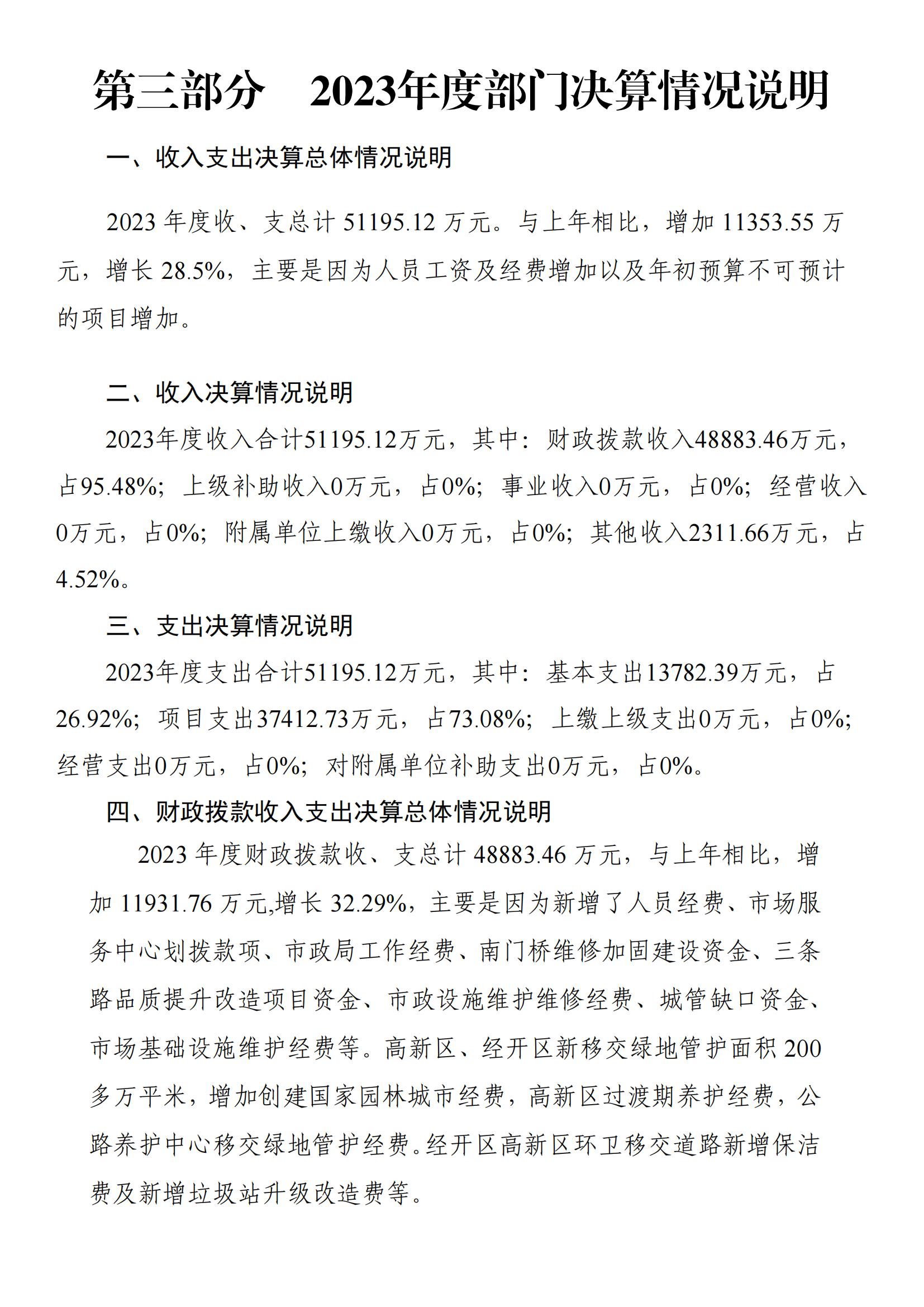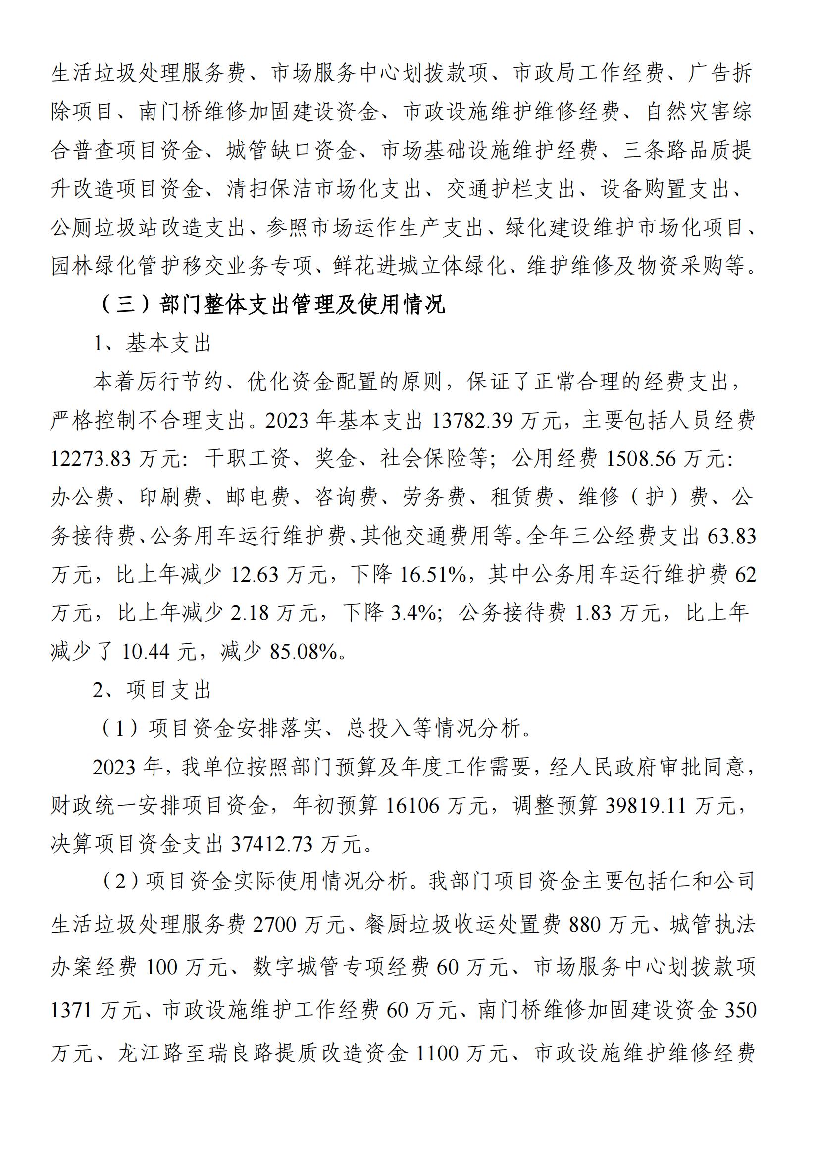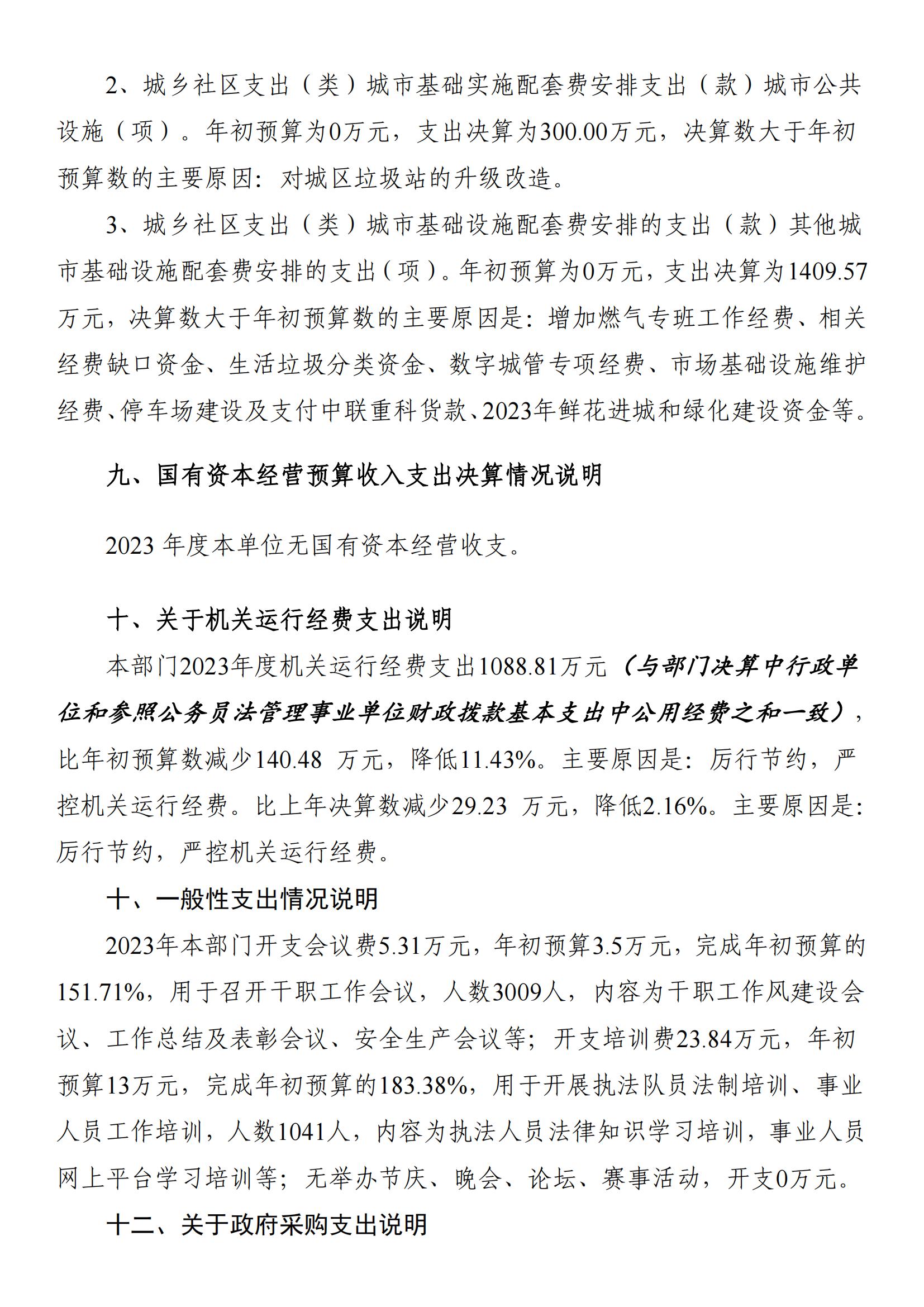 2023年度城市管理和綜合執法局部門決算公開(匯總)