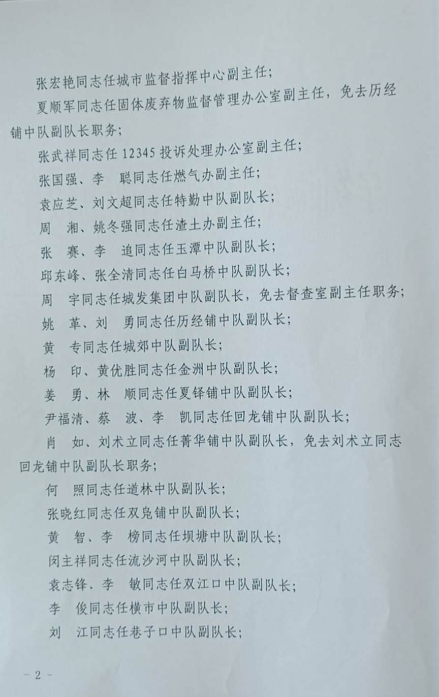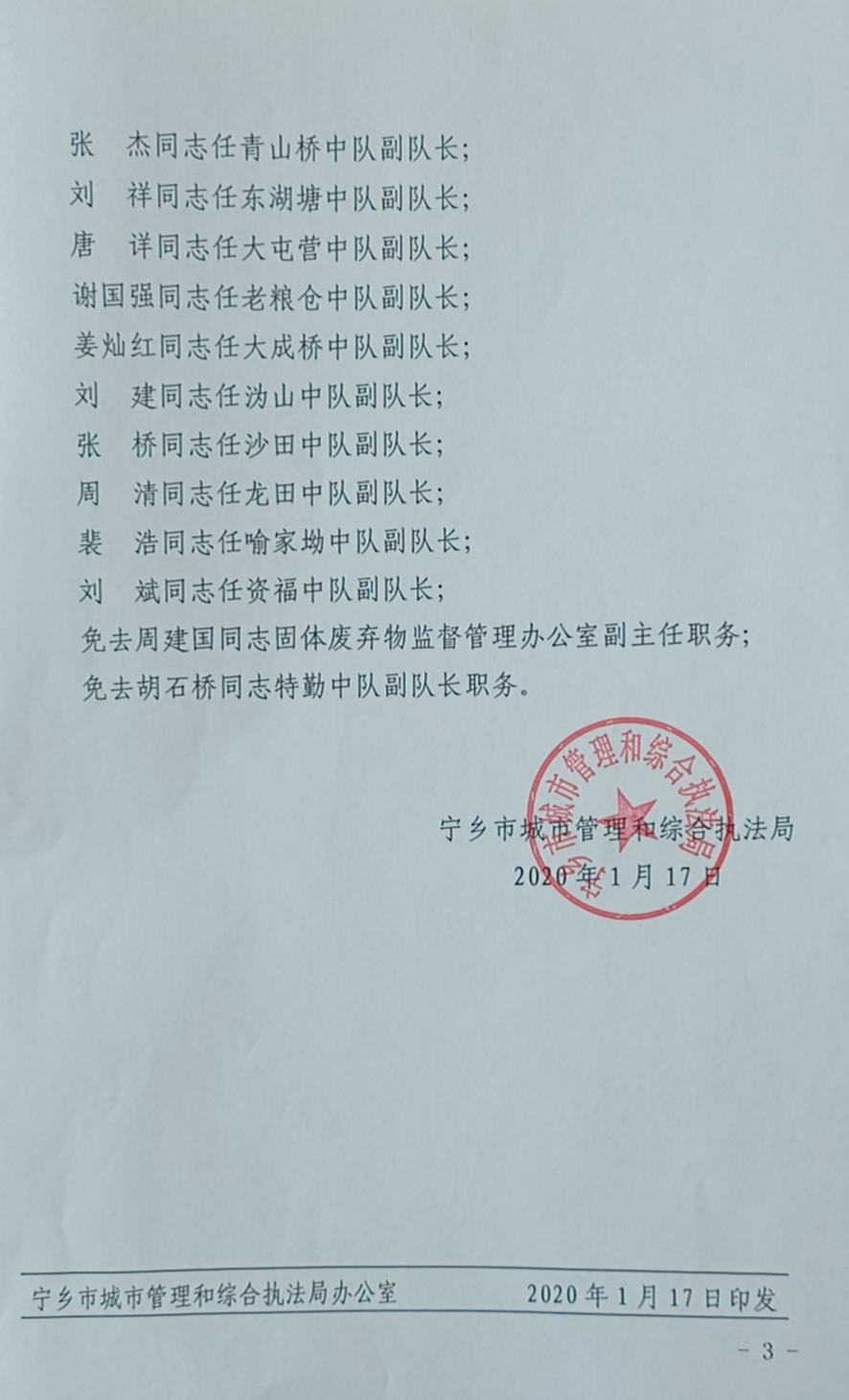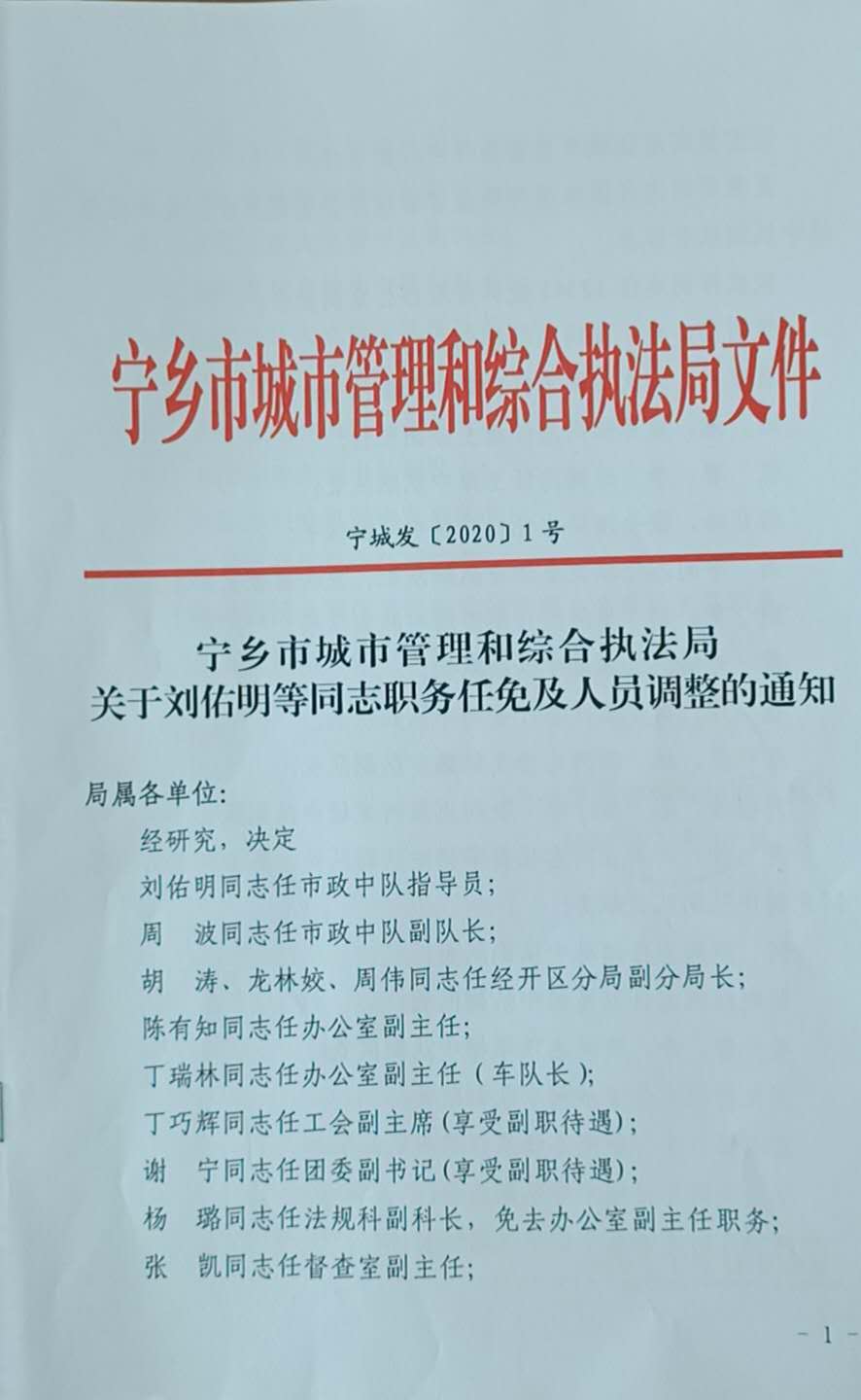 首頁 > 政務公開 > 部門信息公開目錄 > 政府工作部門 > 寧鄉市城市管理和綜合執法局 > 人事信息