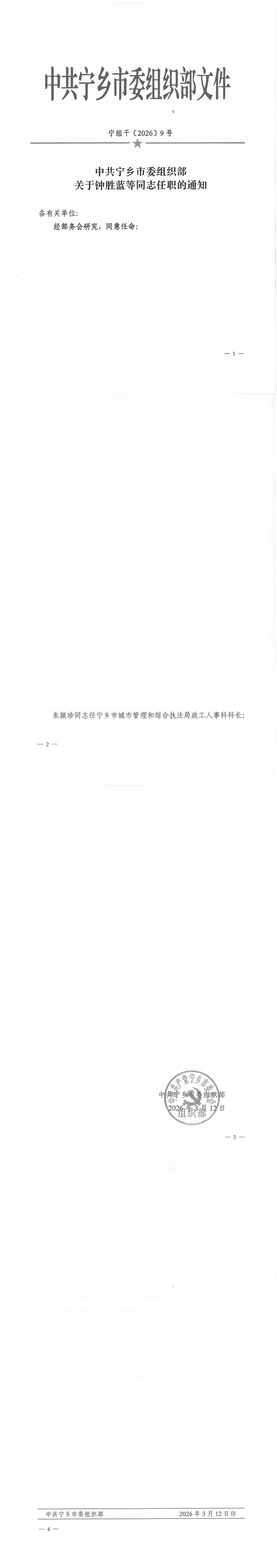 關于鐘勝藍等同志任職的通知