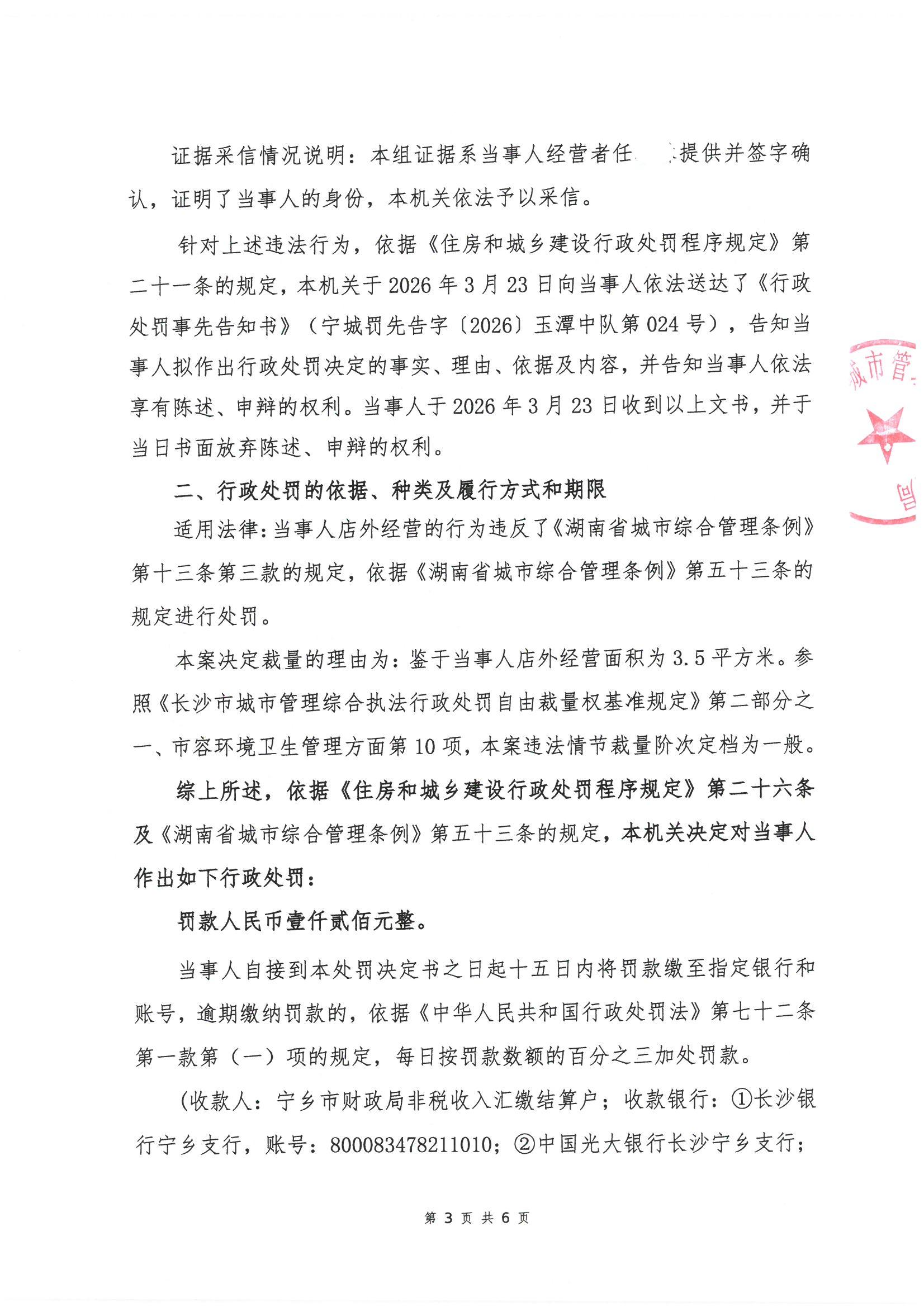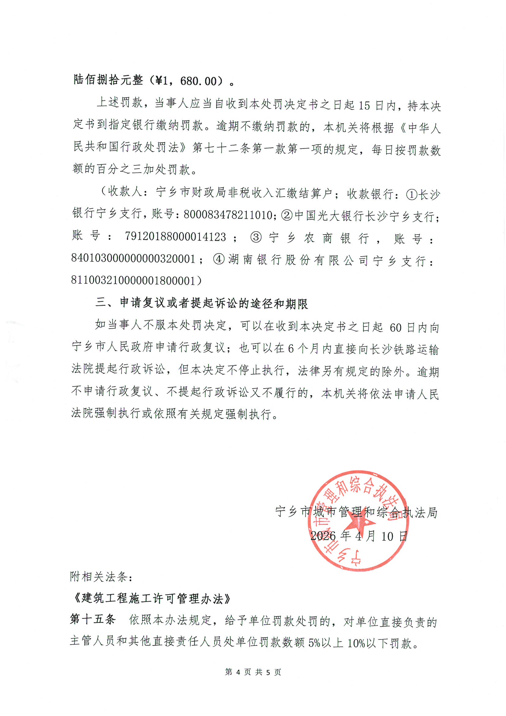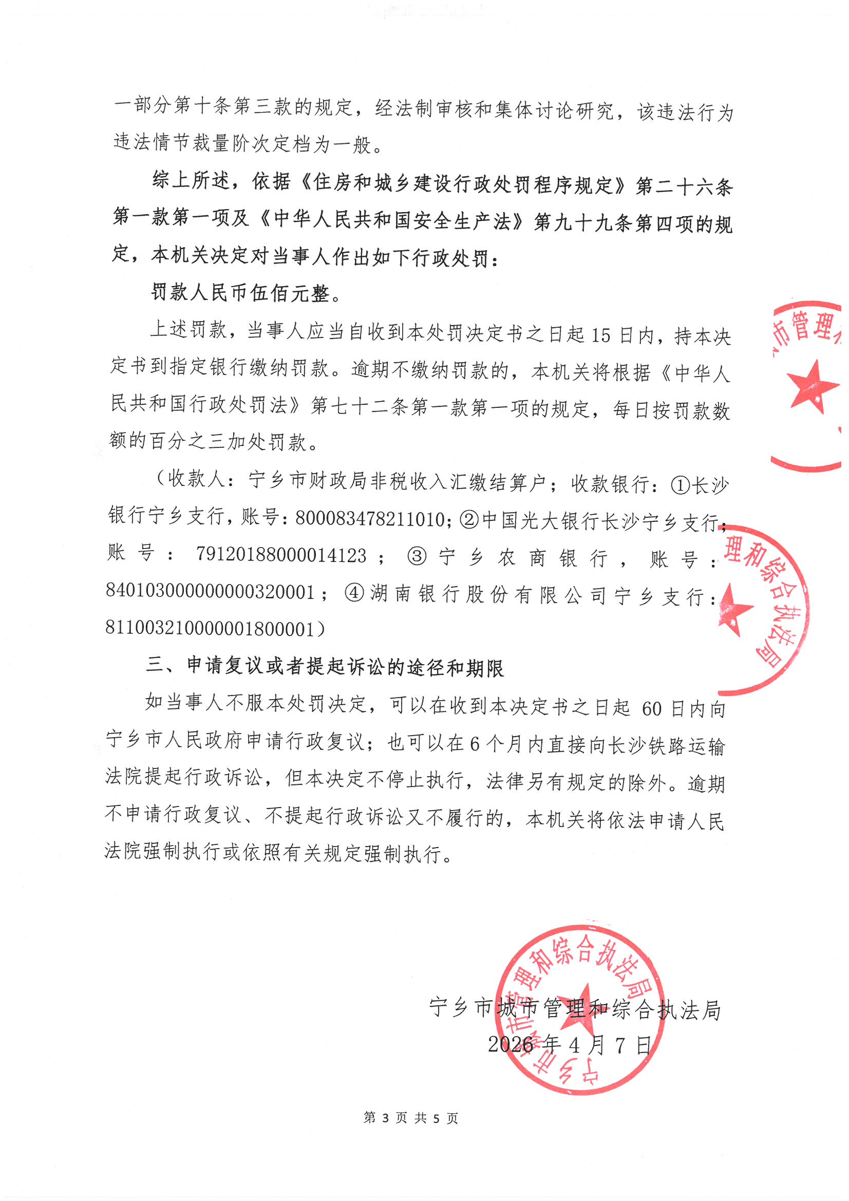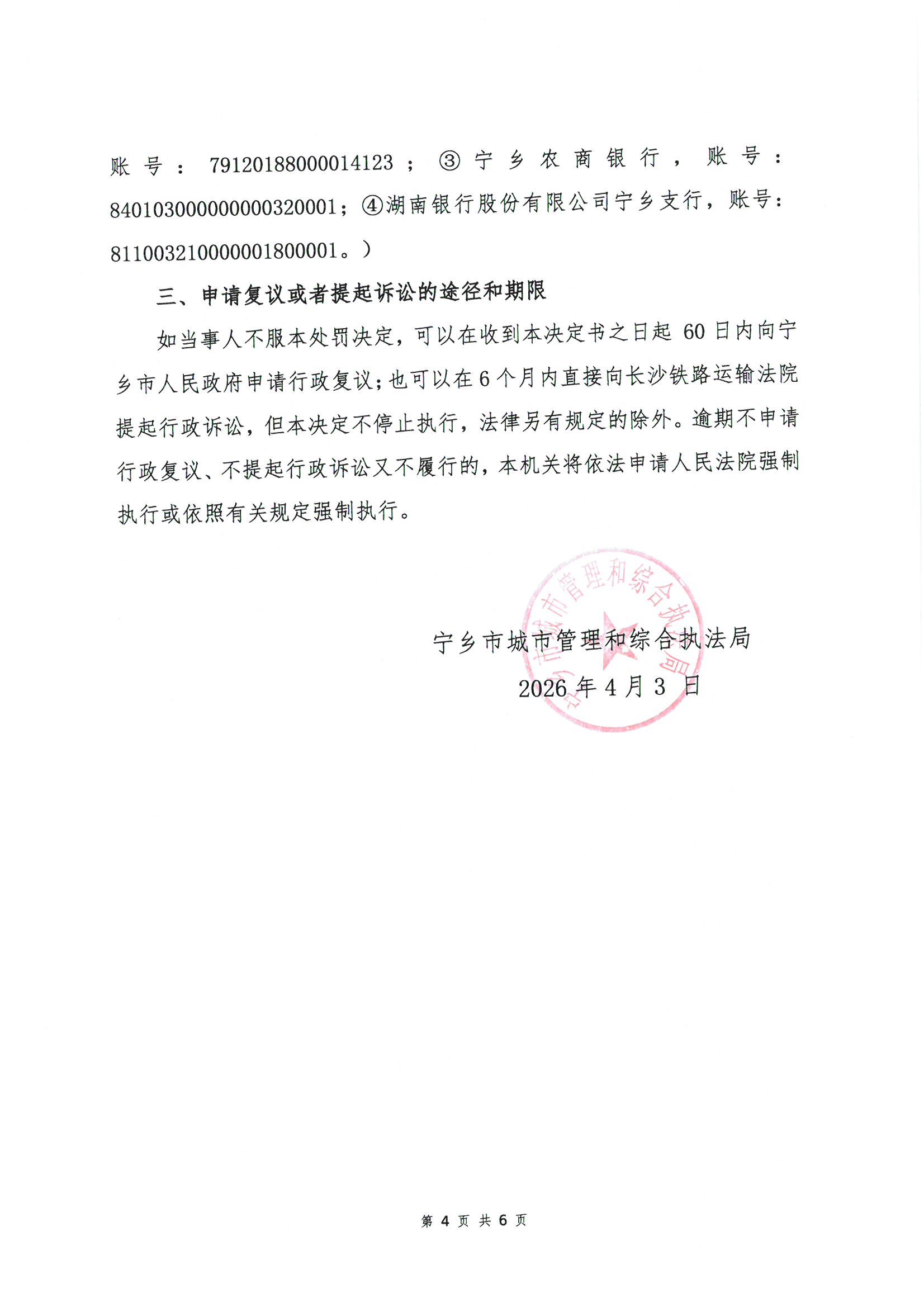 寧鄉市城市管理和綜合執法局行政處罰決定書公示