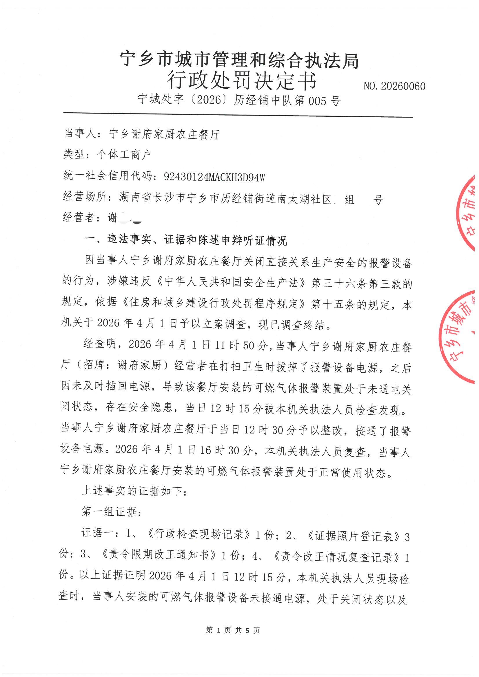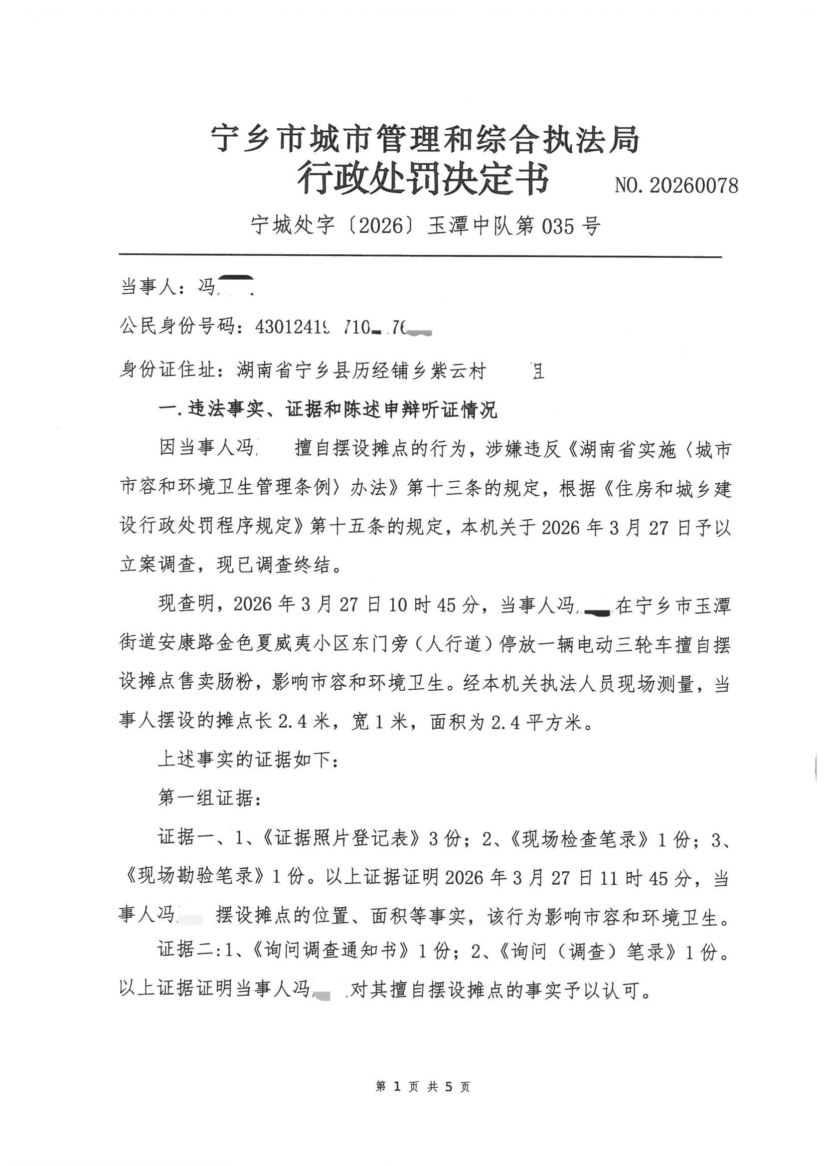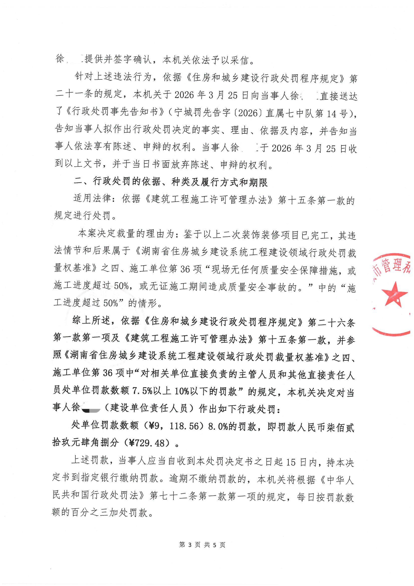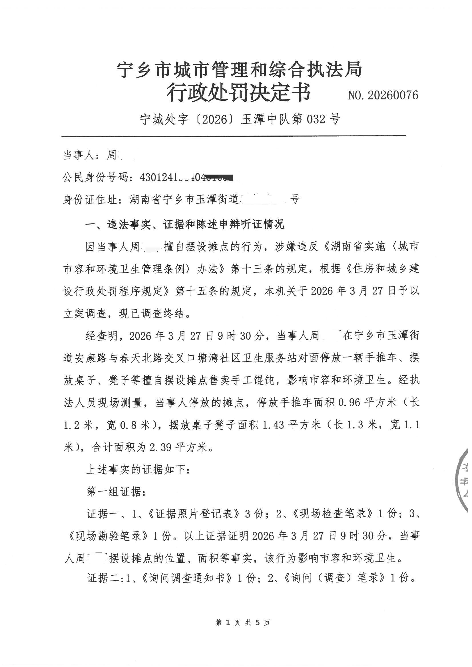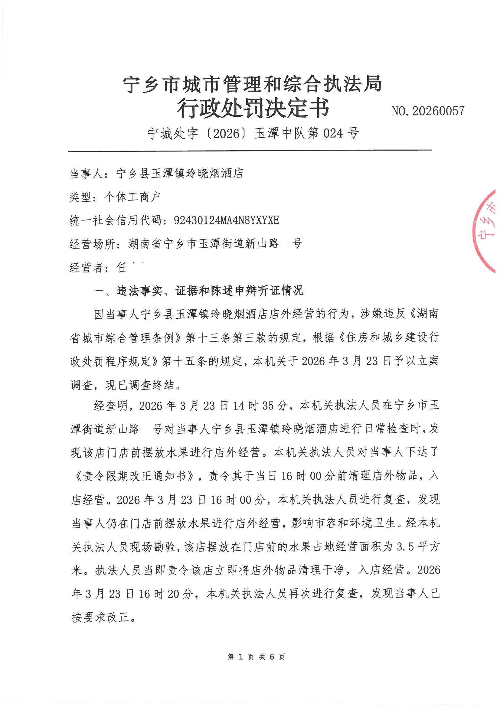 寧鄉市城市管理和綜合執法局行政處罰決定書公示