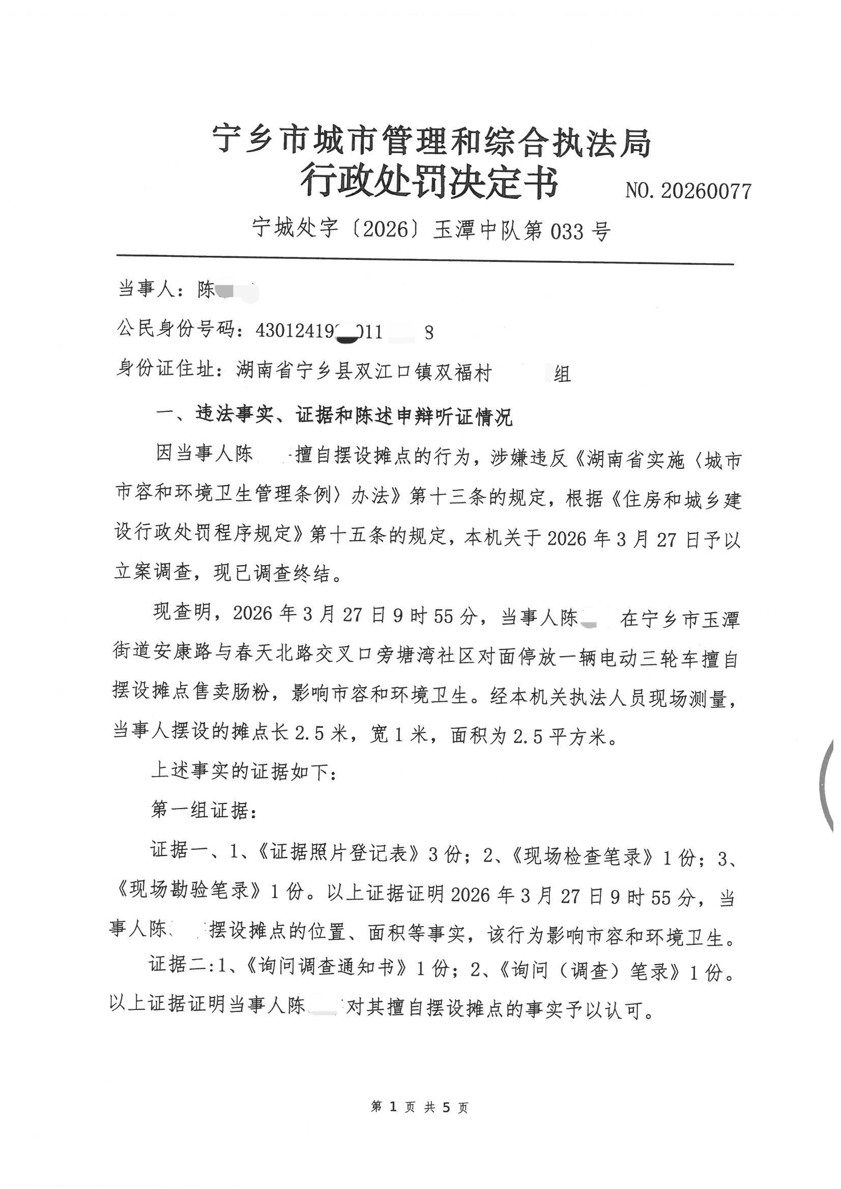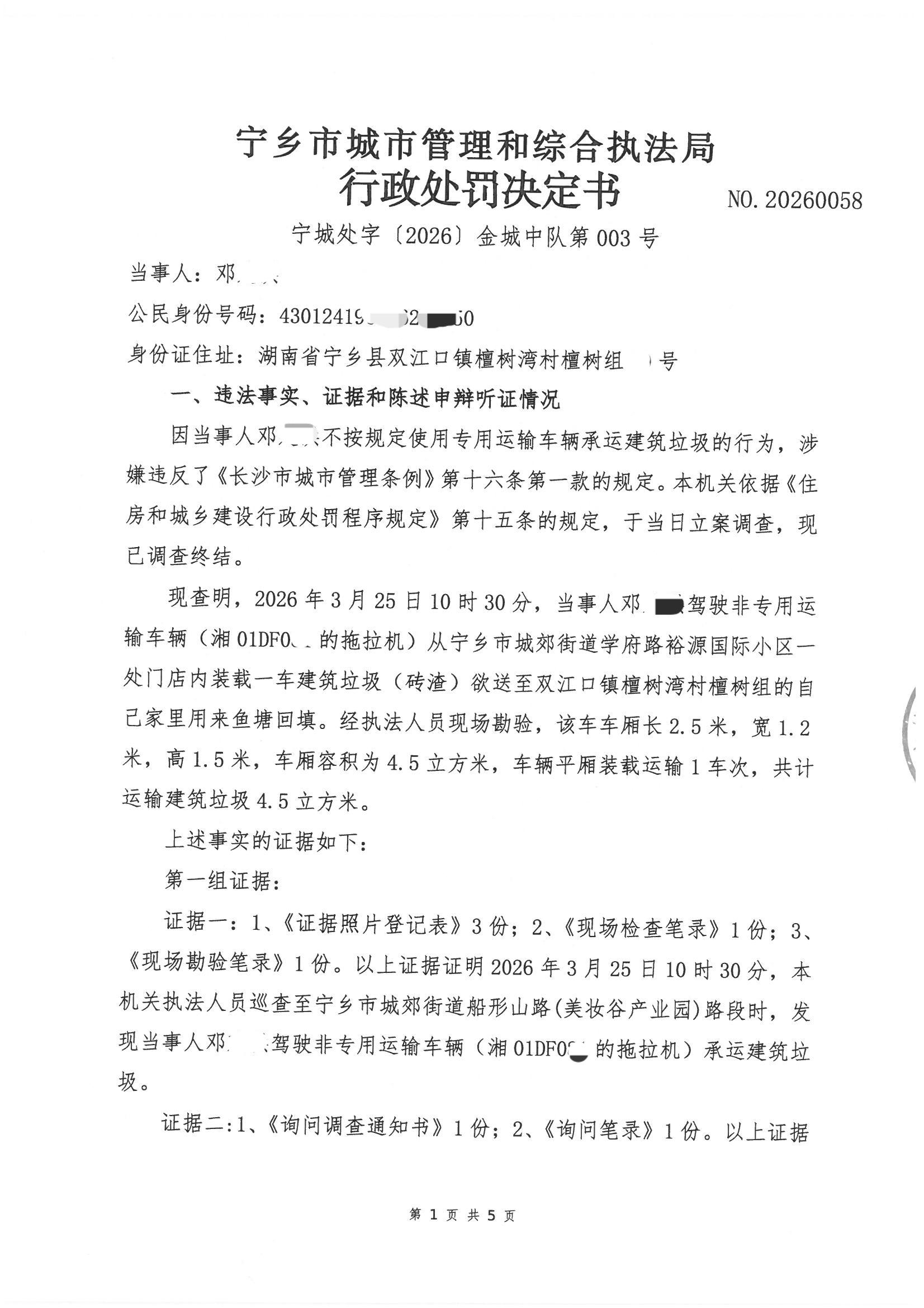 首頁 > 政務公開 > 部門信息公開目錄 > 政府工作部門 > 寧鄉市城市管理和綜合執法局 > 行政處罰決定