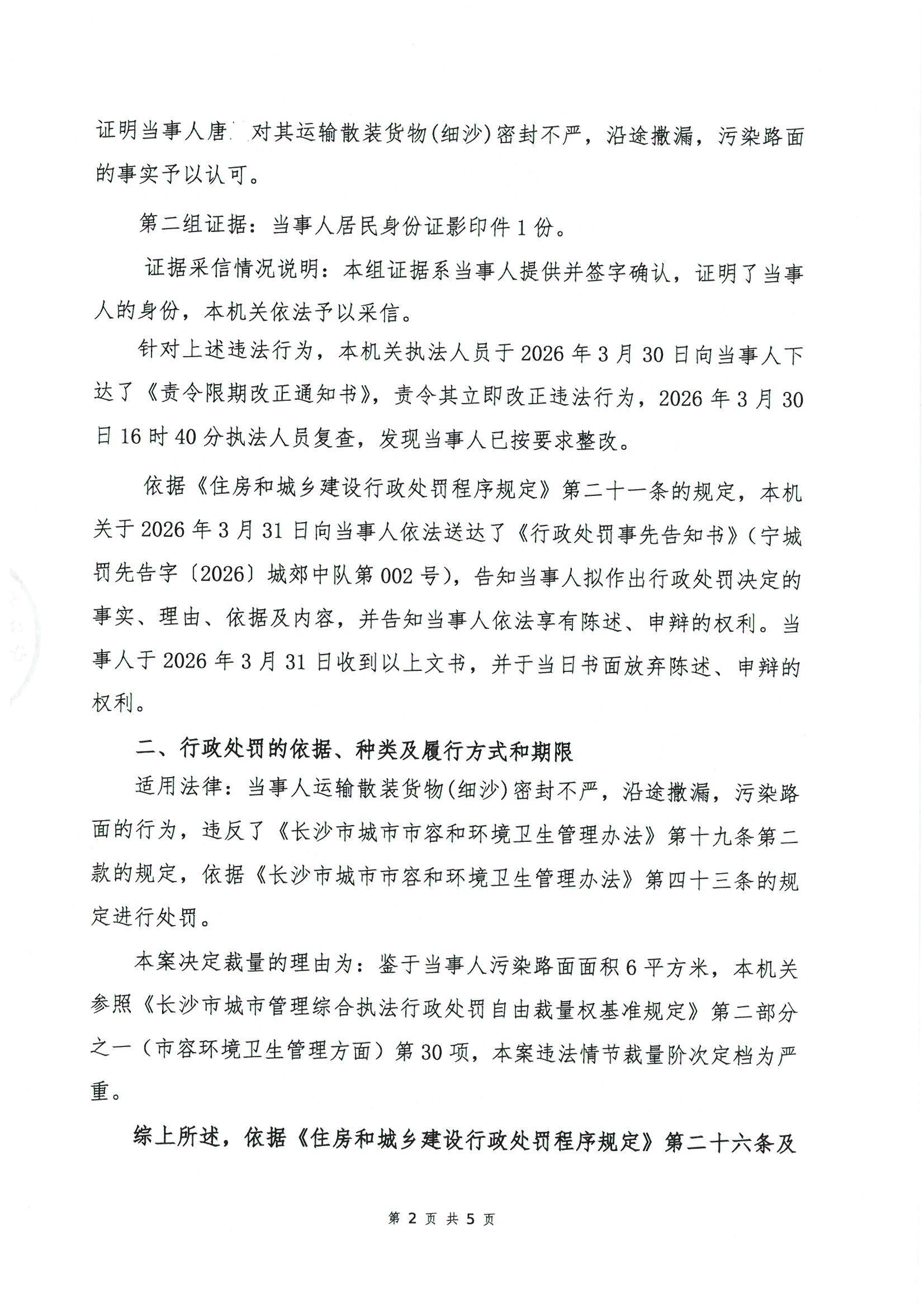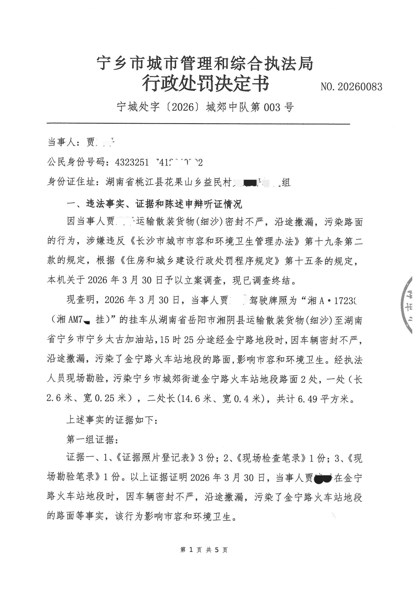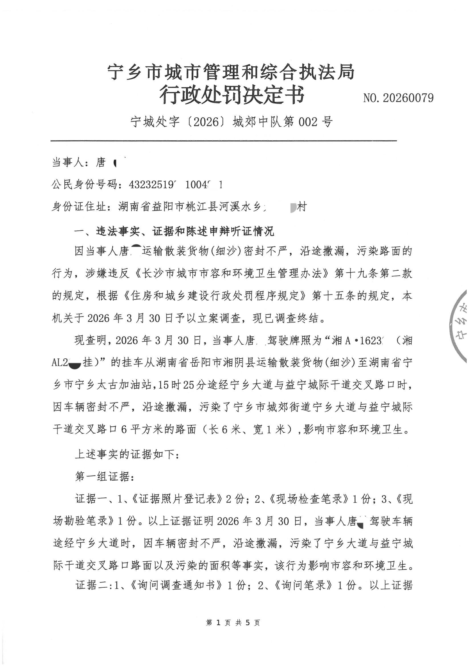 首頁 > 政務公開 > 部門信息公開目錄 > 政府工作部門 > 寧鄉市城市管理和綜合執法局 > 行政處罰決定