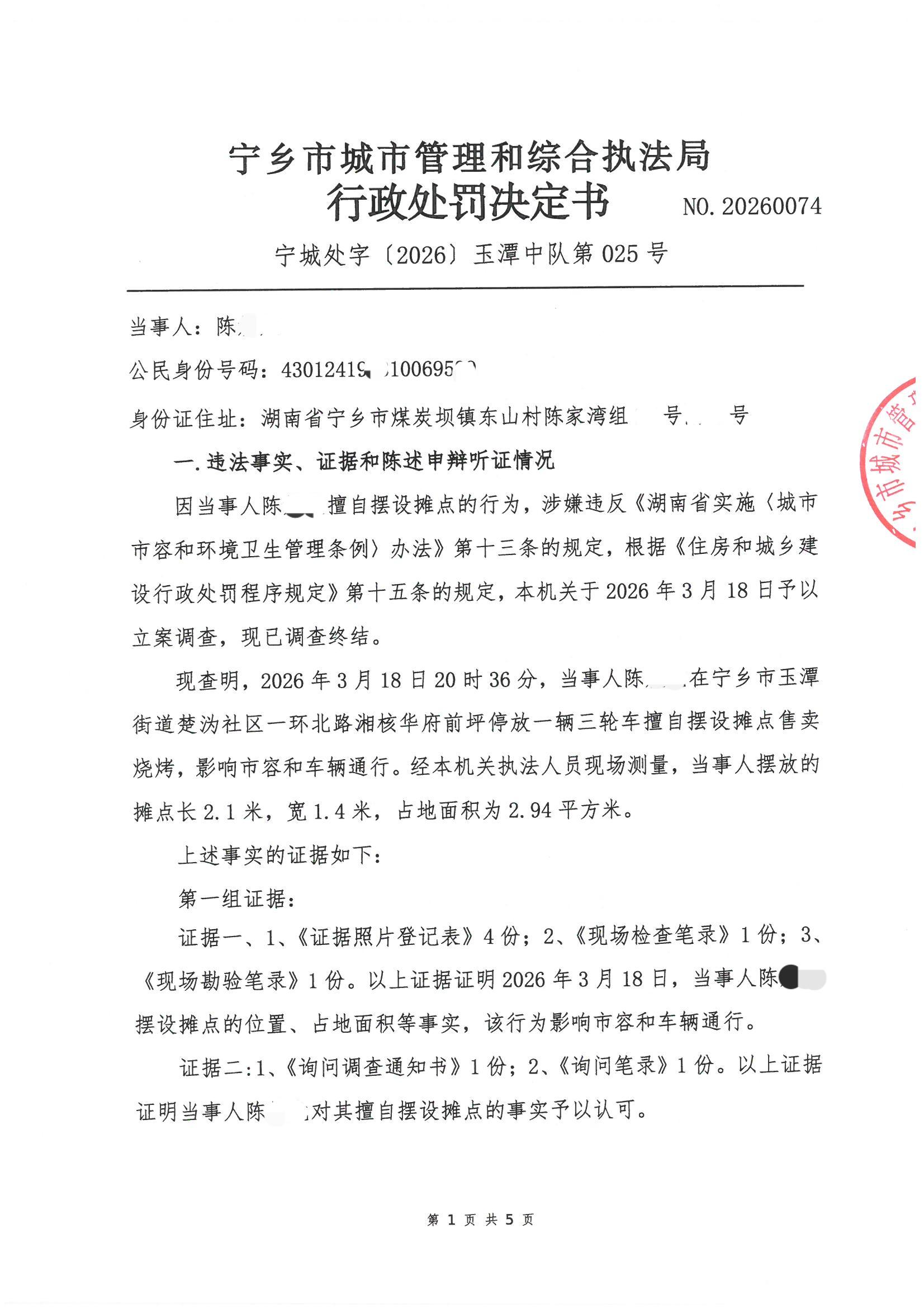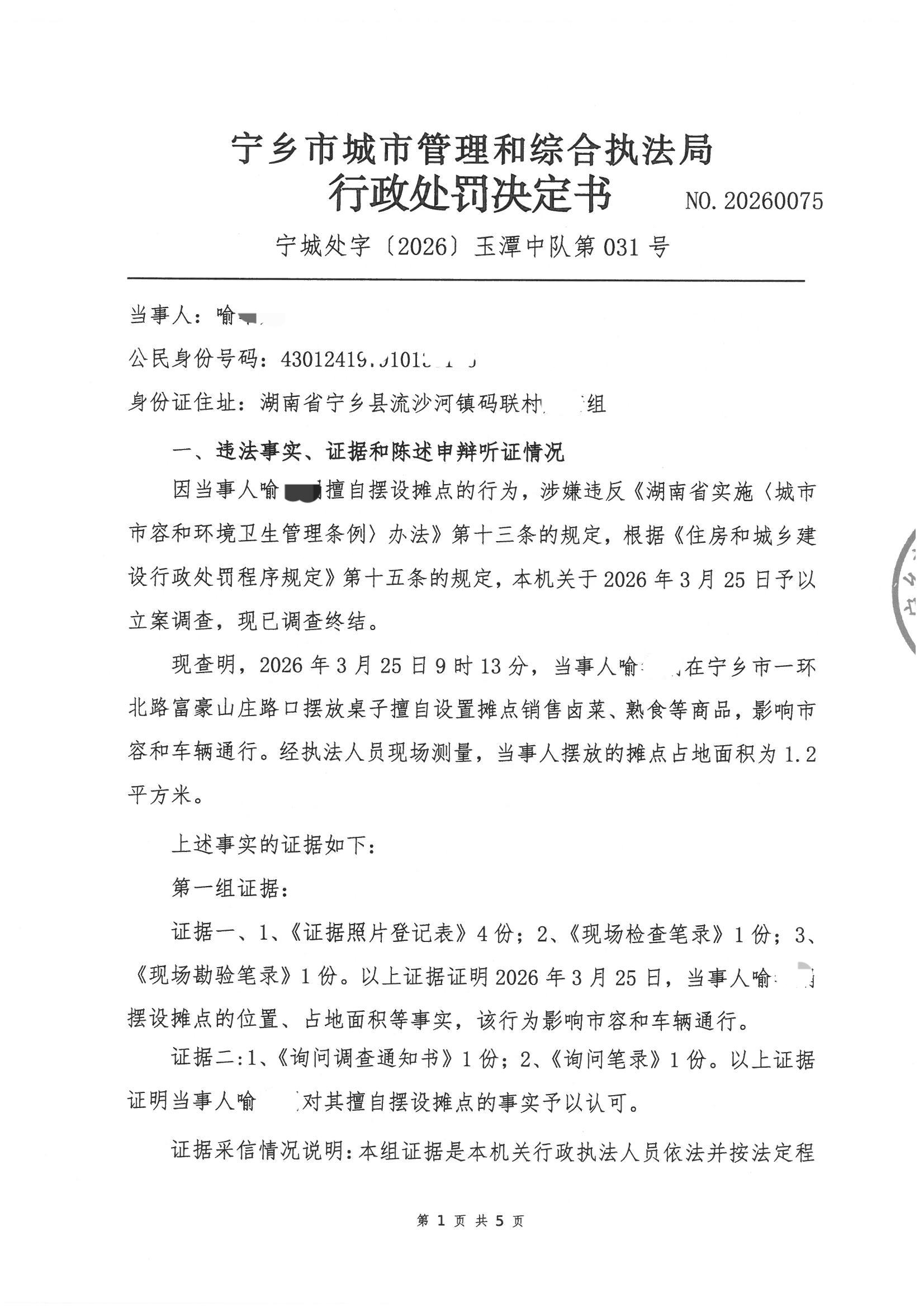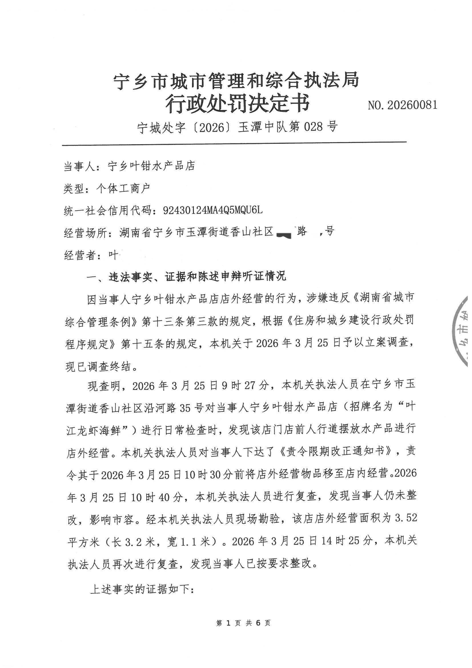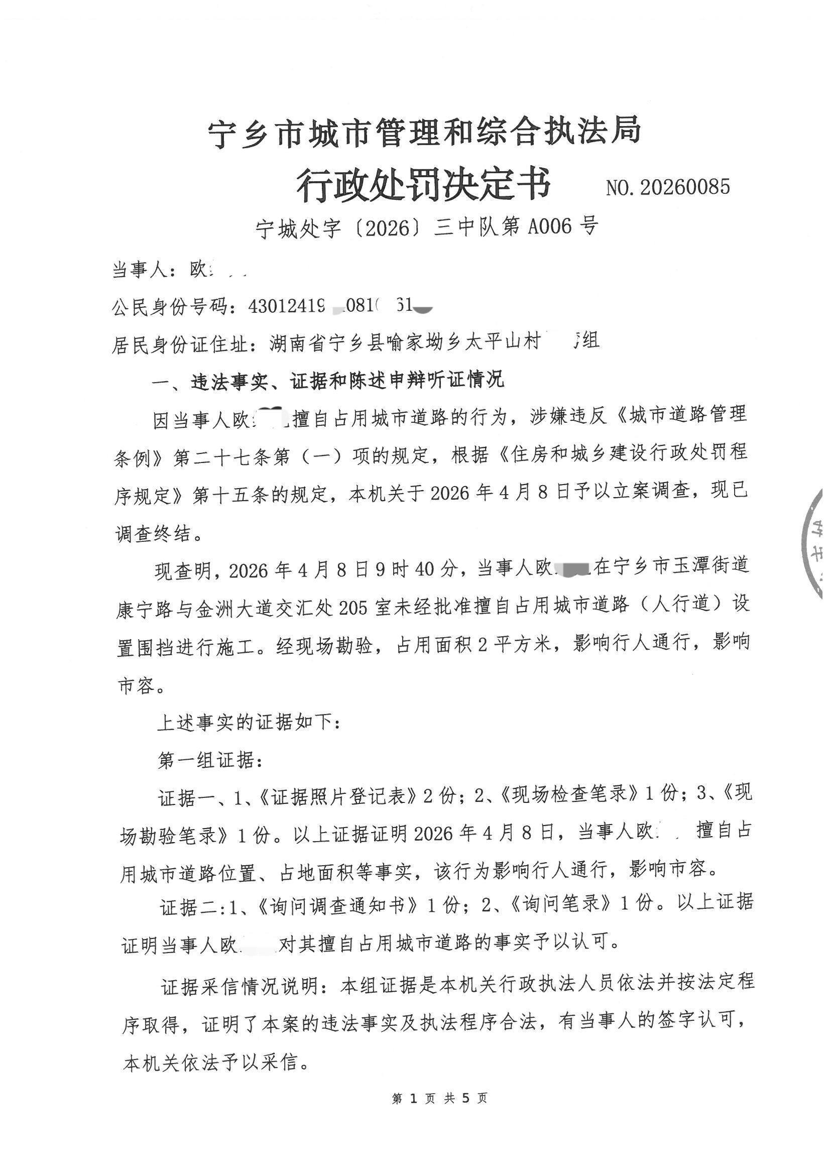 首頁 > 政務公開 > 部門信息公開目錄 > 政府工作部門 > 寧鄉市城市管理和綜合執法局 > 行政處罰決定
