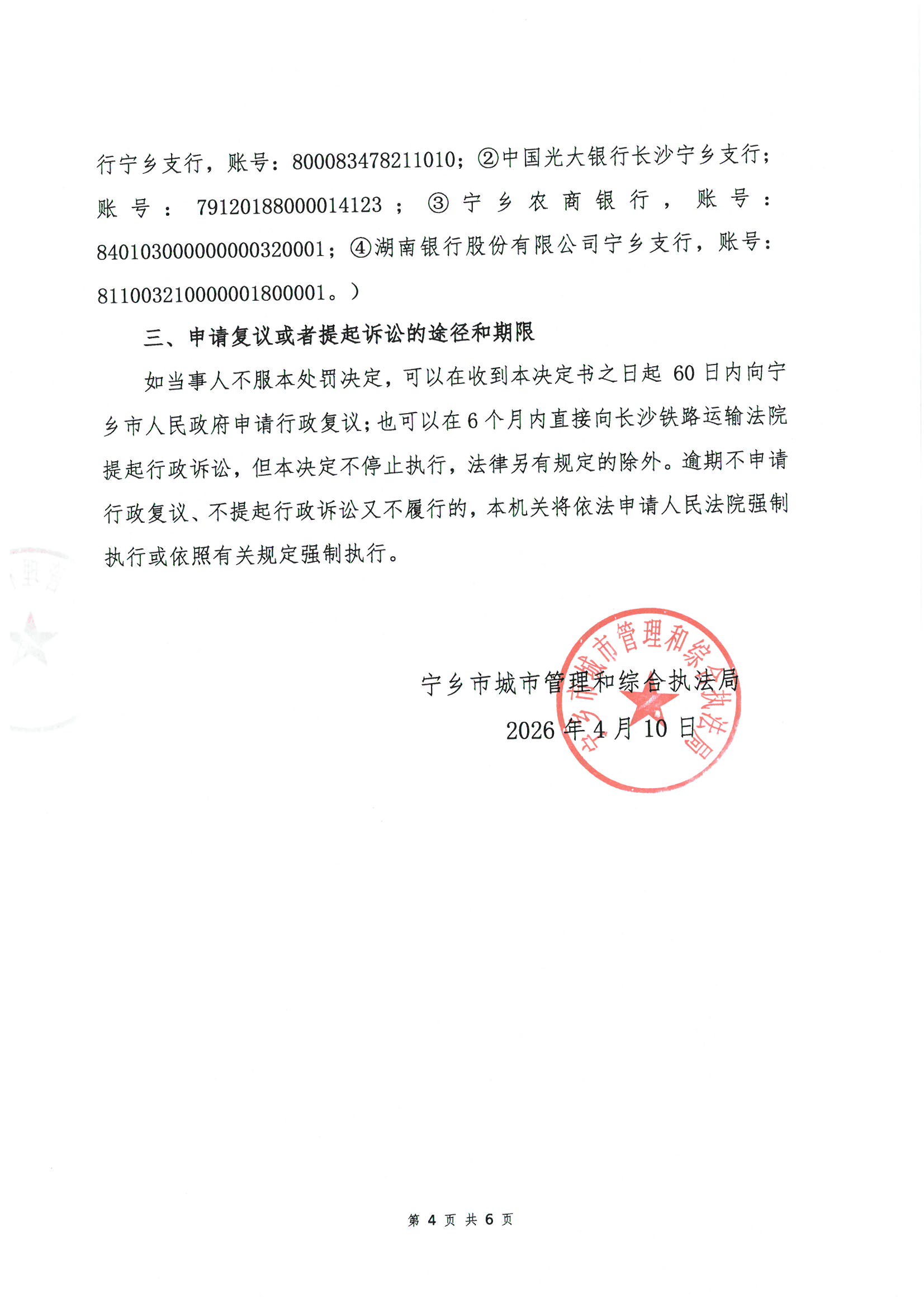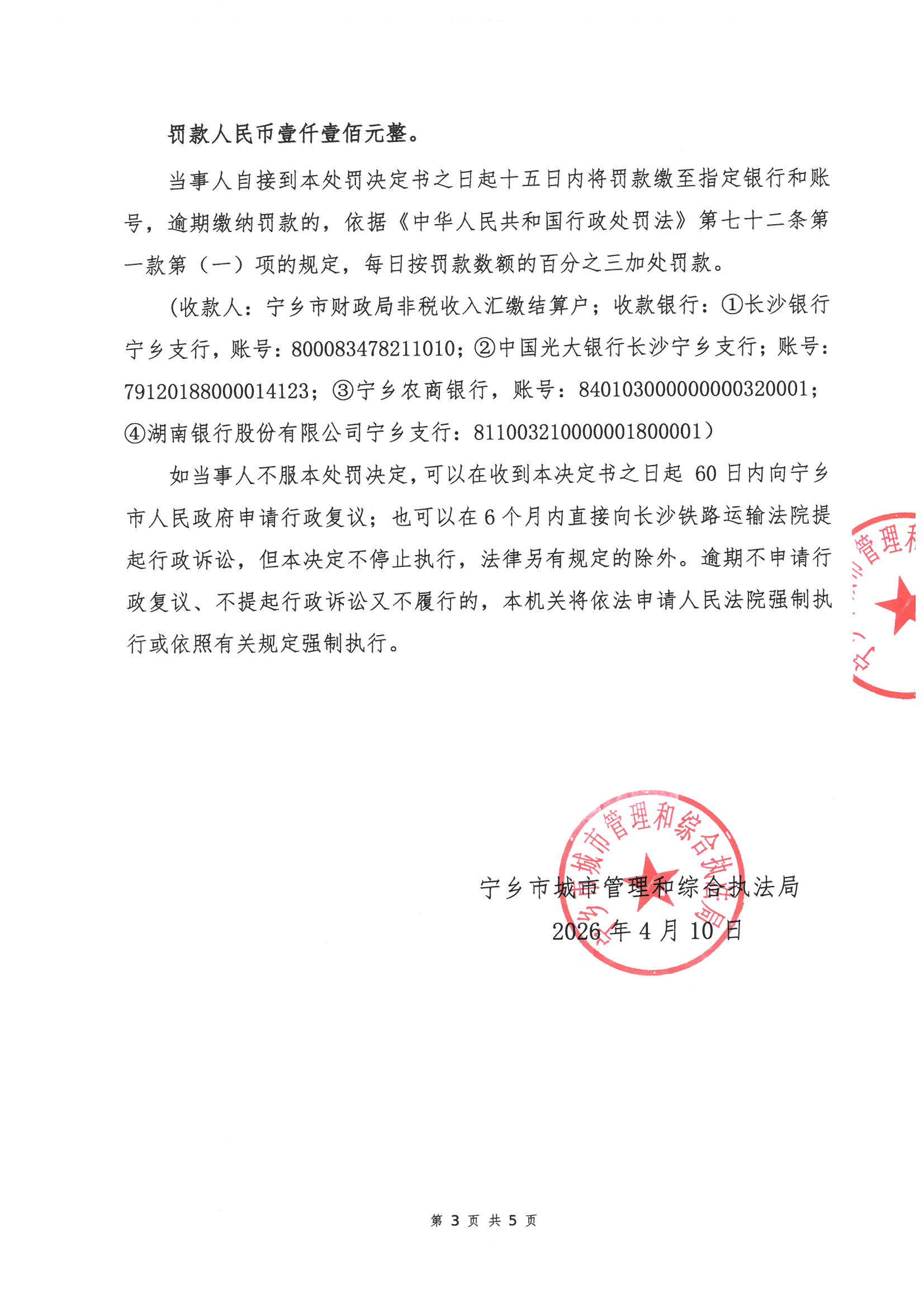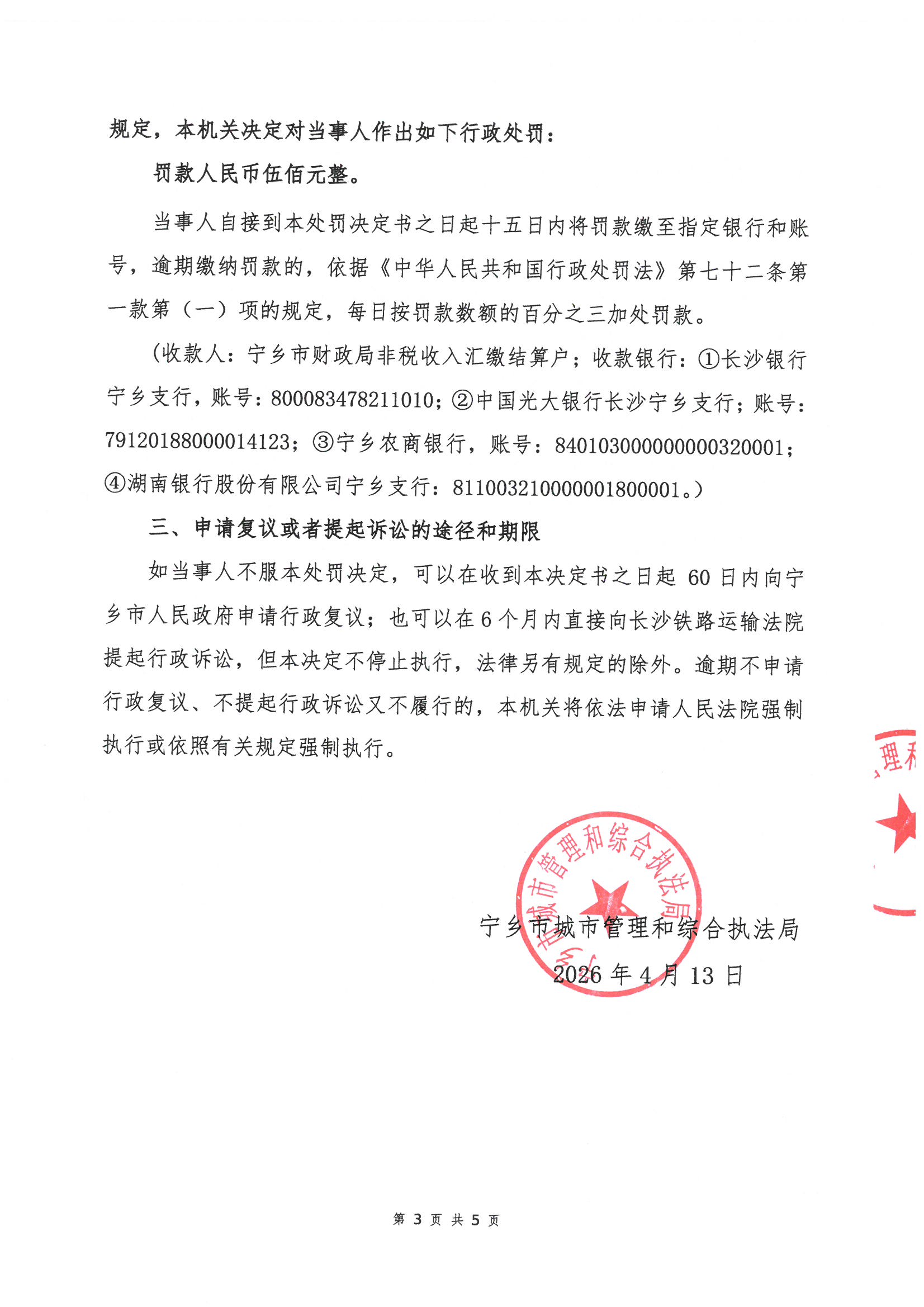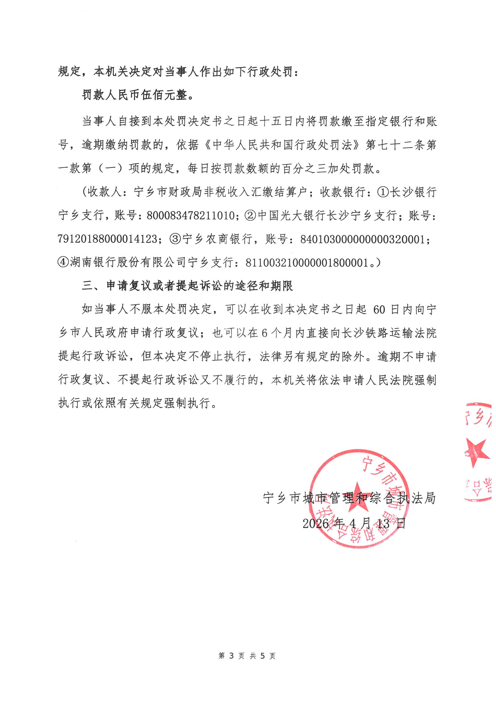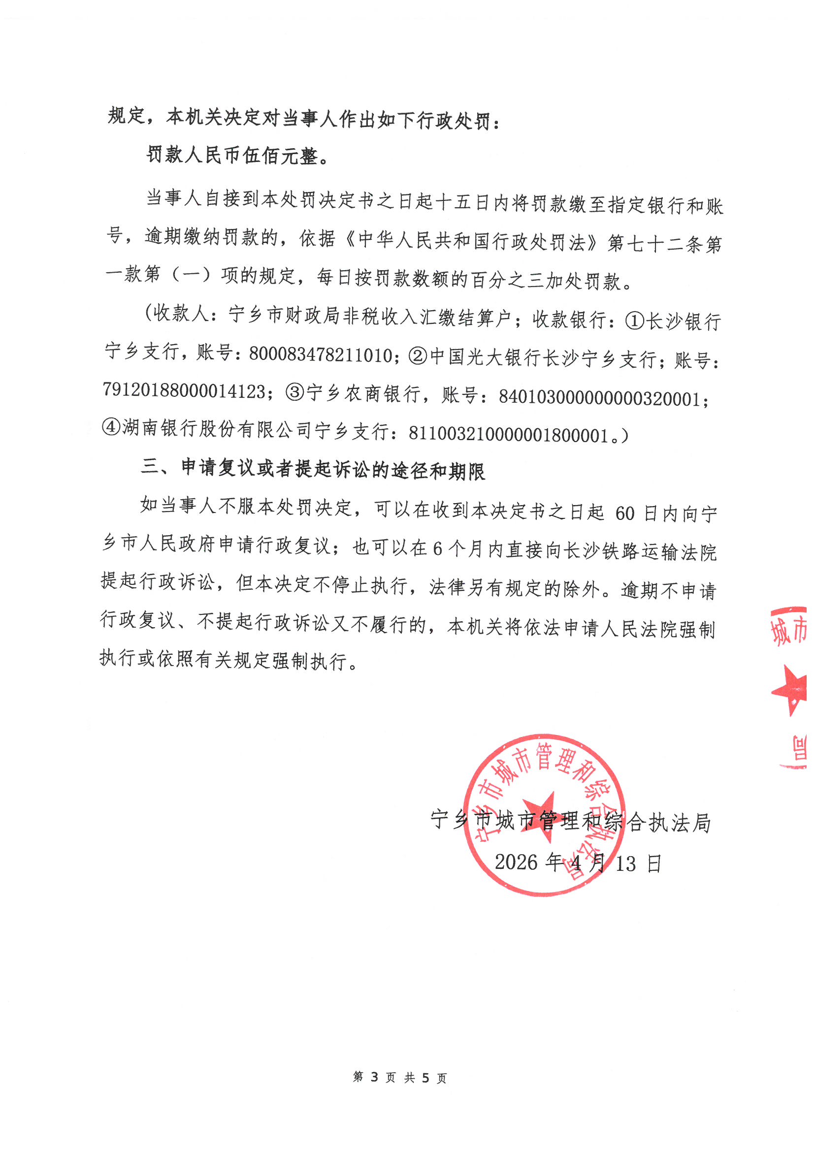 寧鄉市城市管理和綜合執法局行政處罰決定書公示