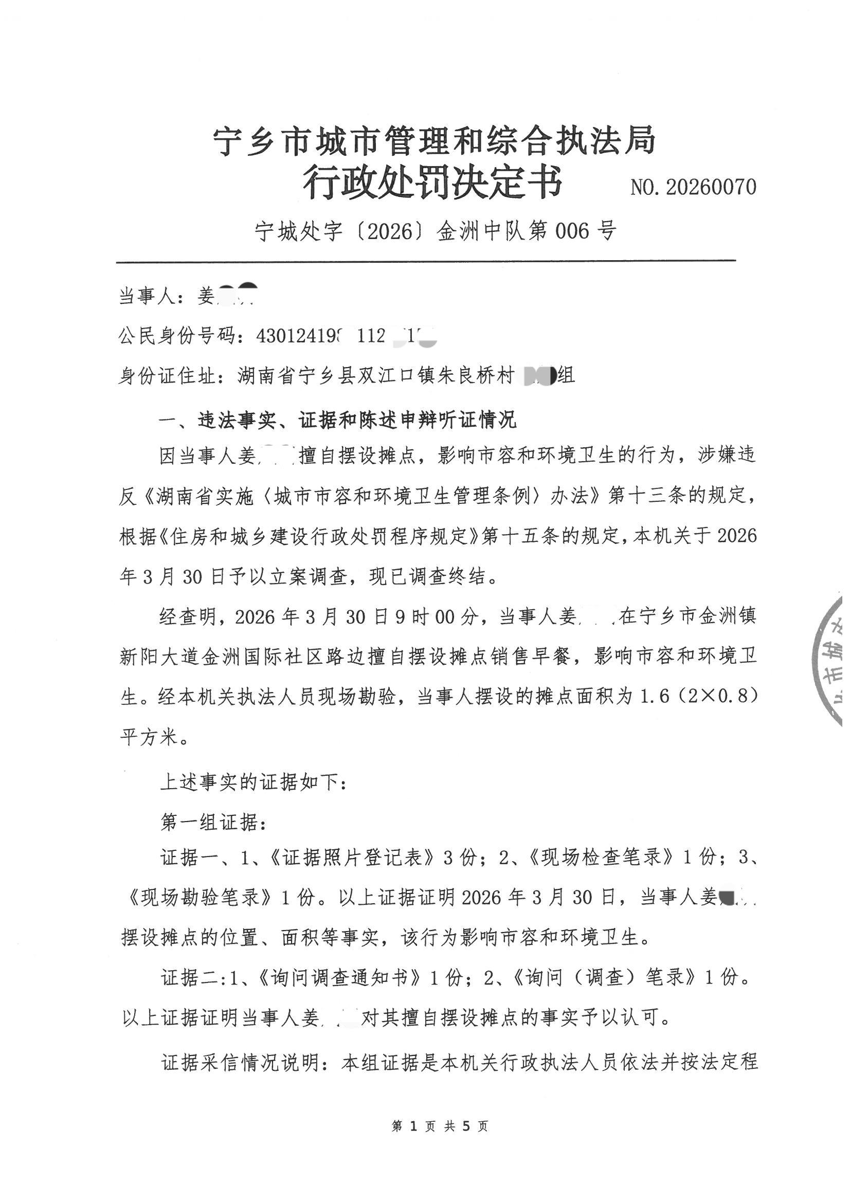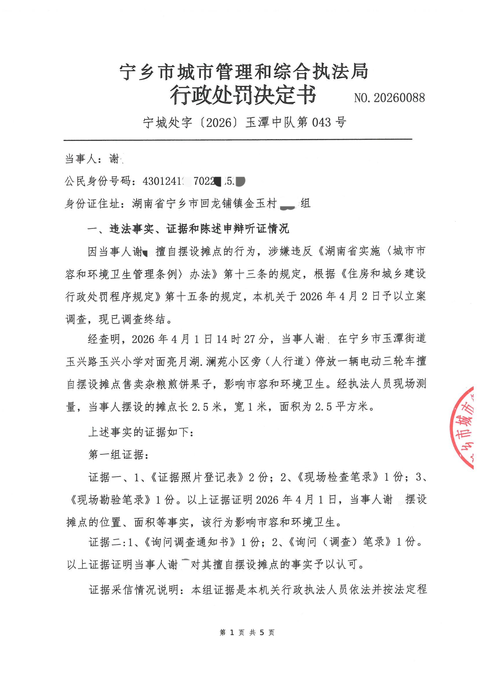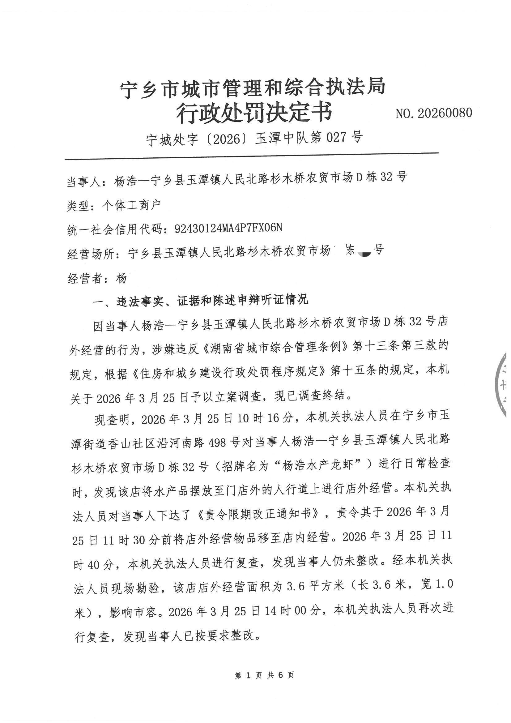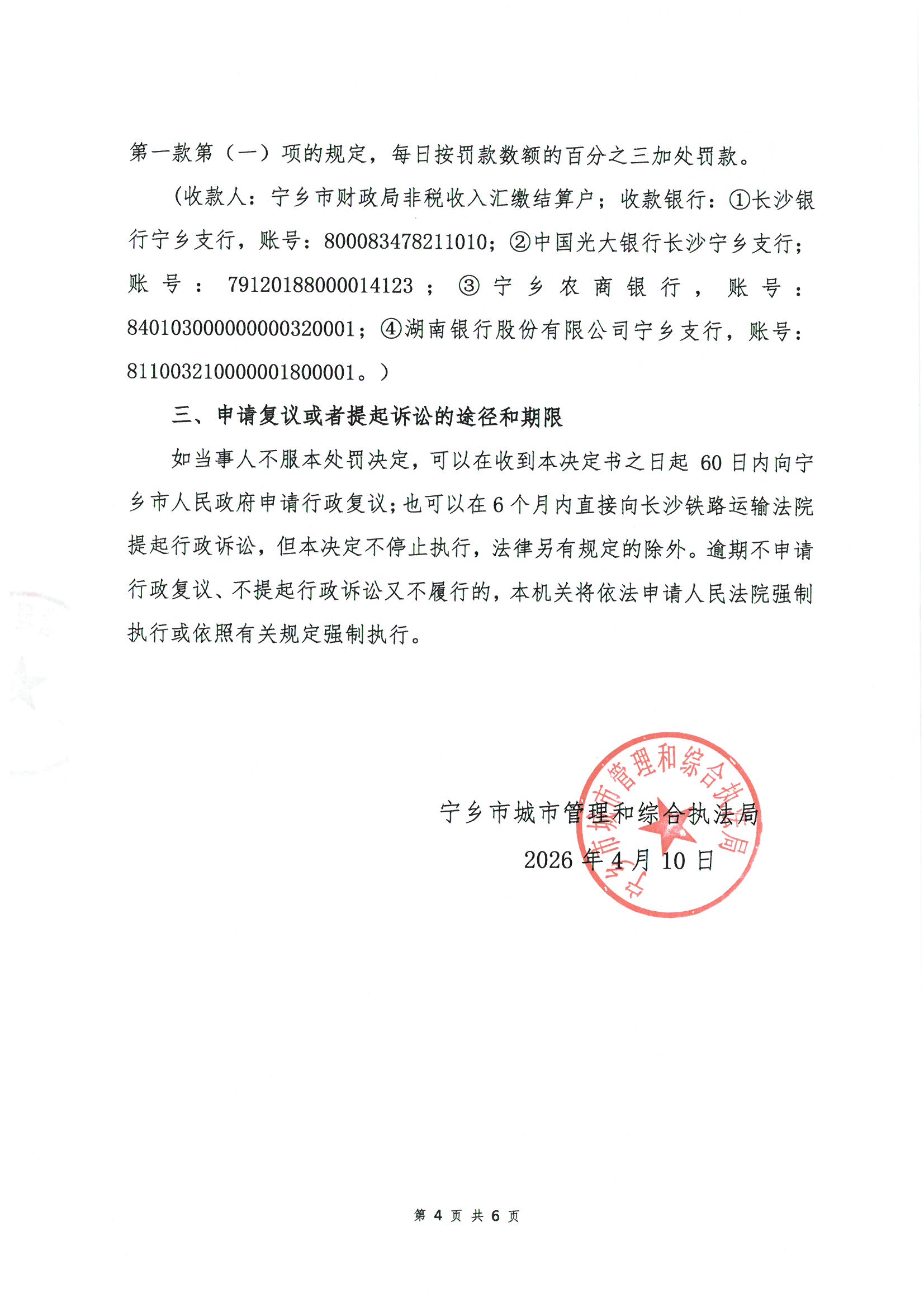 寧鄉市城市管理和綜合執法局行政處罰決定書公示