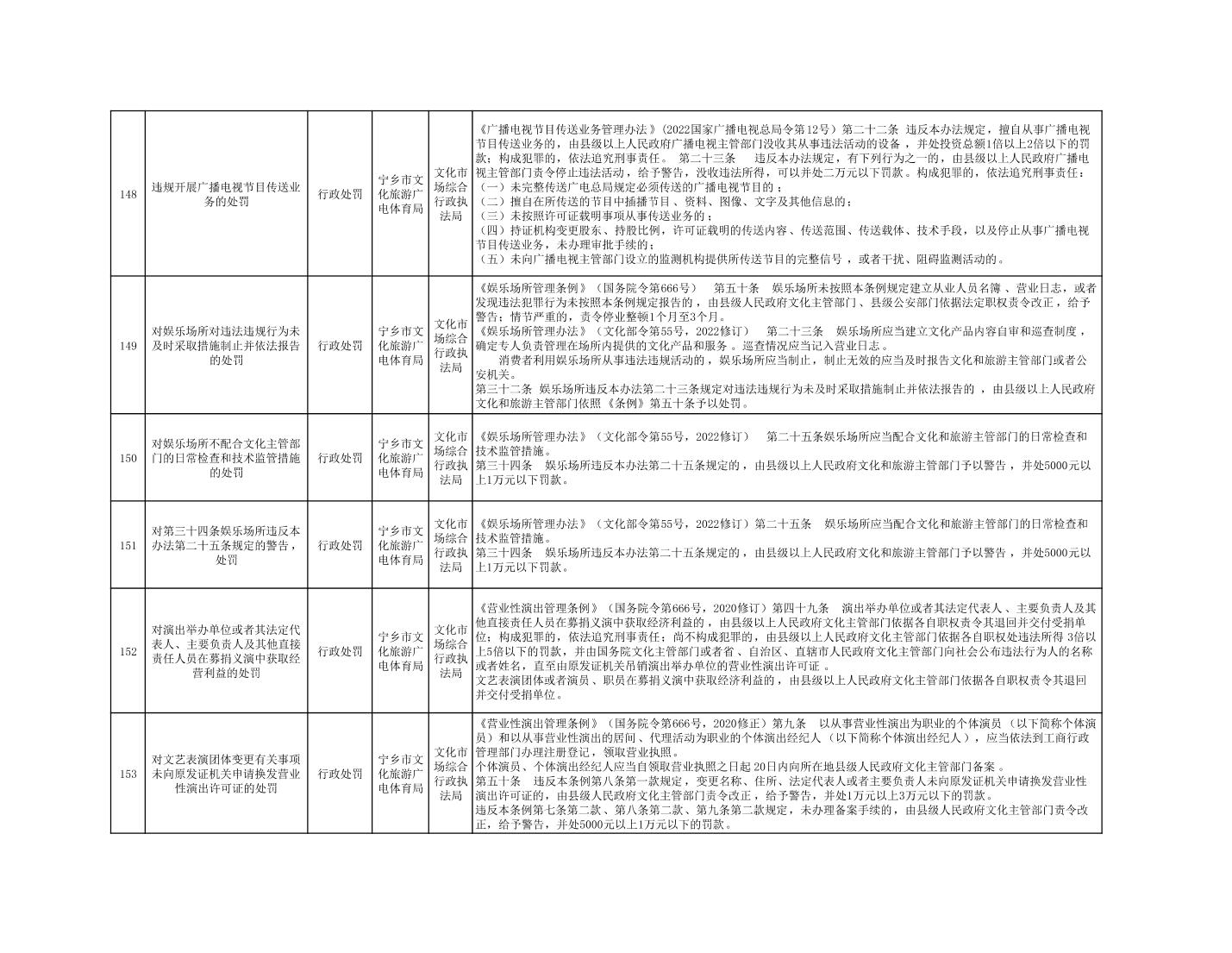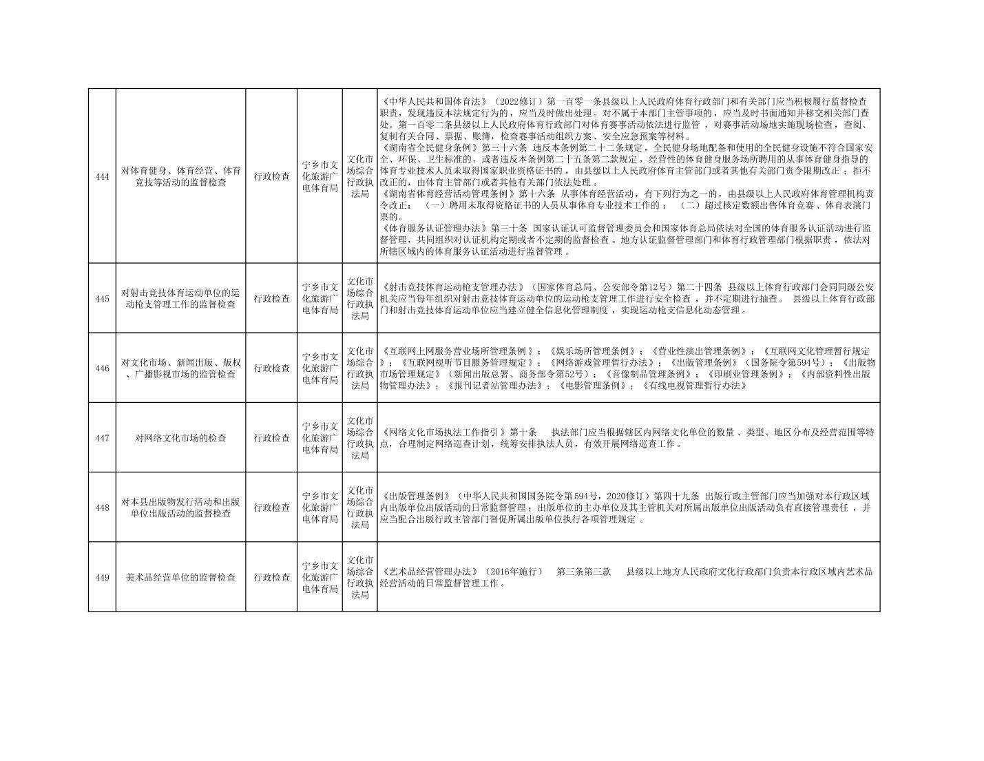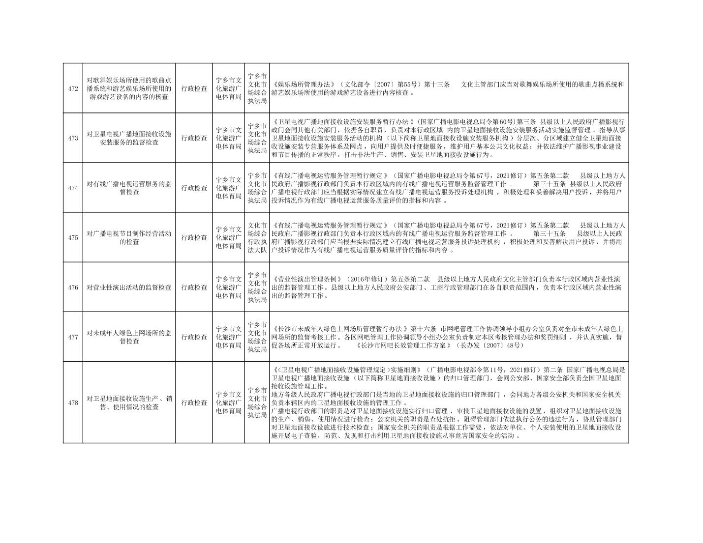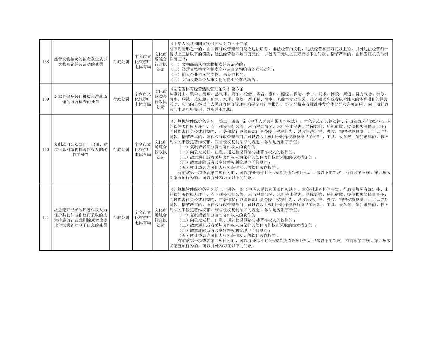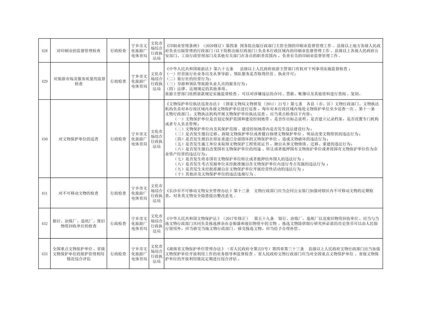 寧鄉市文化旅游廣電體育局行政執法事項目錄